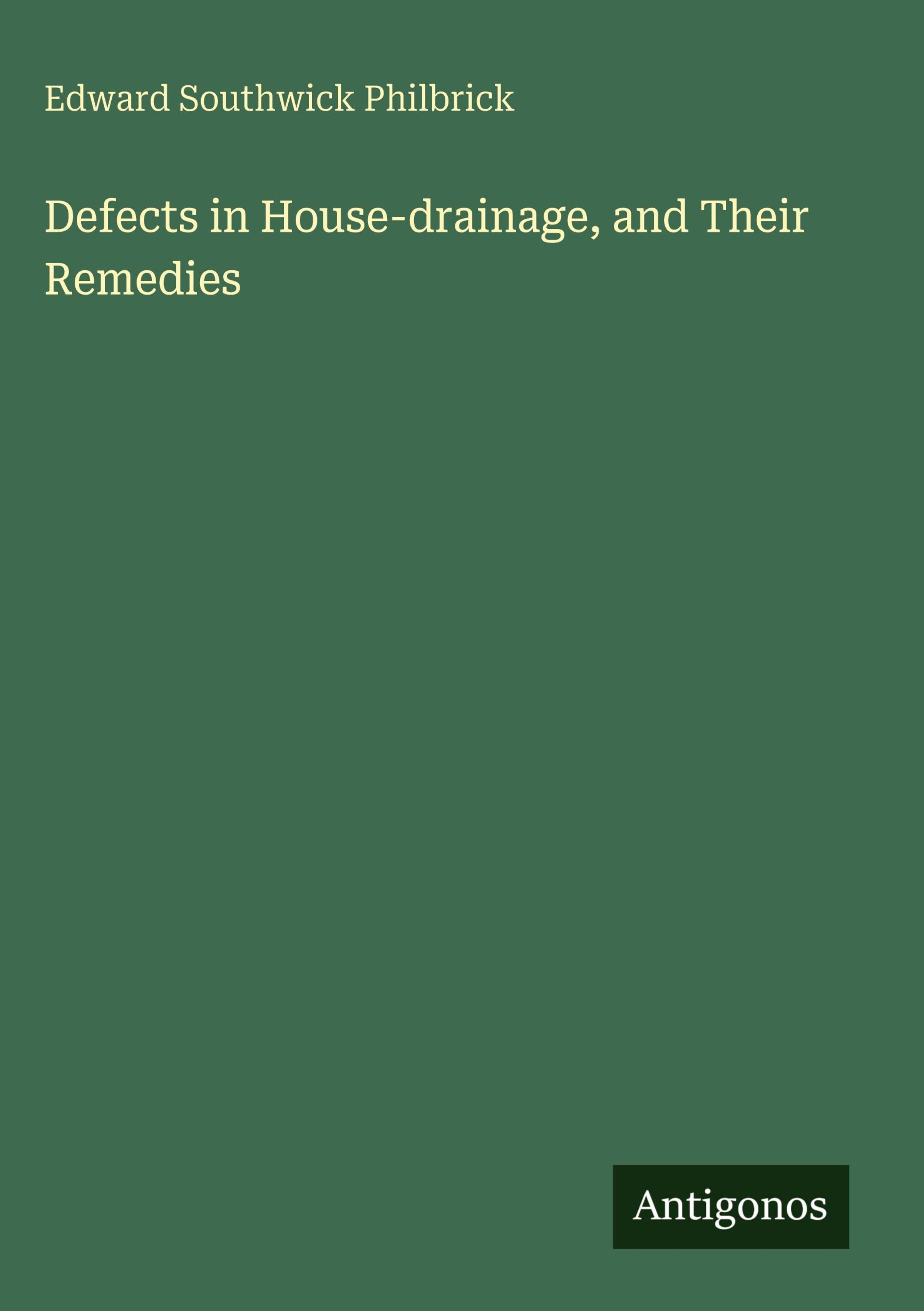 Edward Southwick Philbrick: Defects in House-drainage, and Their Remedies, Gebunden