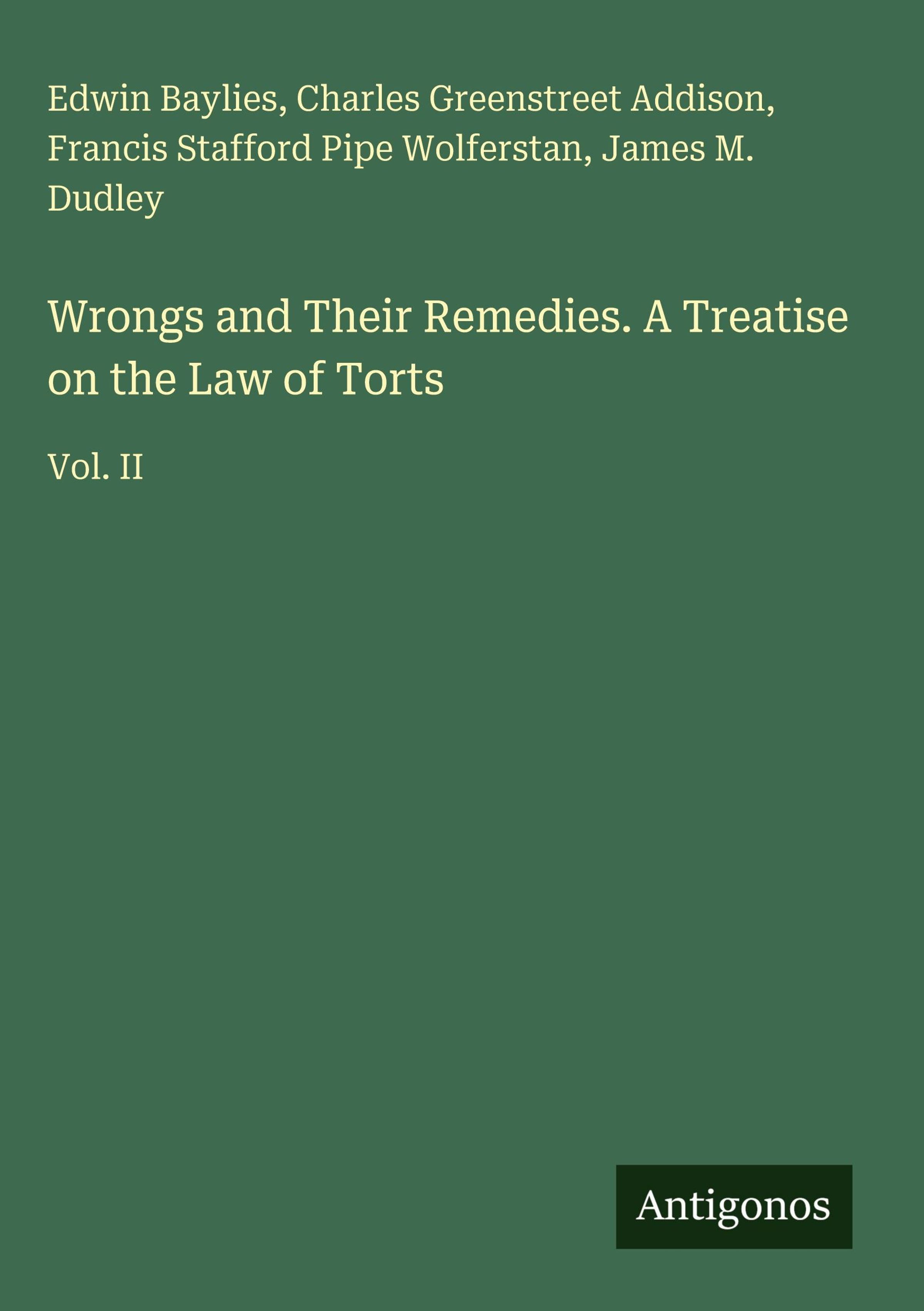 Wrongs and Their Remedies. A Treatise on the Law of Torts