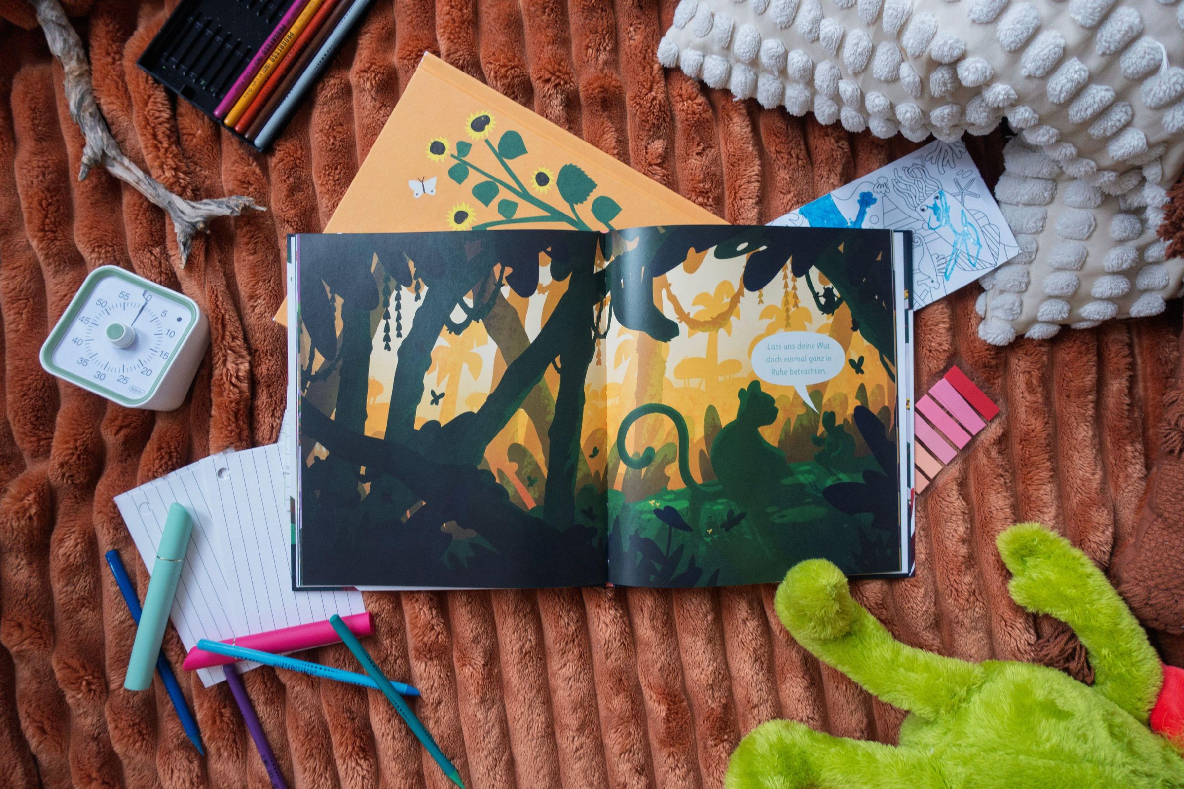 Gefühle sind gar nicht so einfach - das merkt auch der kleine Leopard, der gar nicht weiß, wohin mit seiner Wut. Bevor er aber den ganzen Dschungel zusammenwüten kann, trifft er auf seinen Freund die Schildkröte - und die kann ganz schön viel zu Gefühlen sagen.