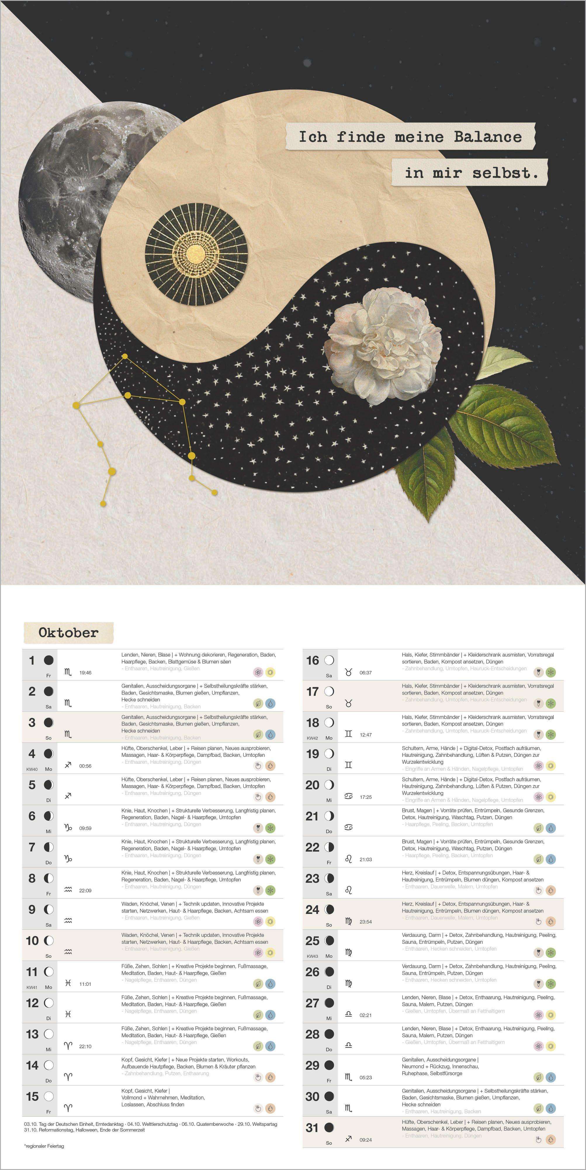 Natürlich im Jahreslauf: Mondphasen, Sonnenlauf und Tierkreiszeichen als stimmiger Jahresbegleiter.