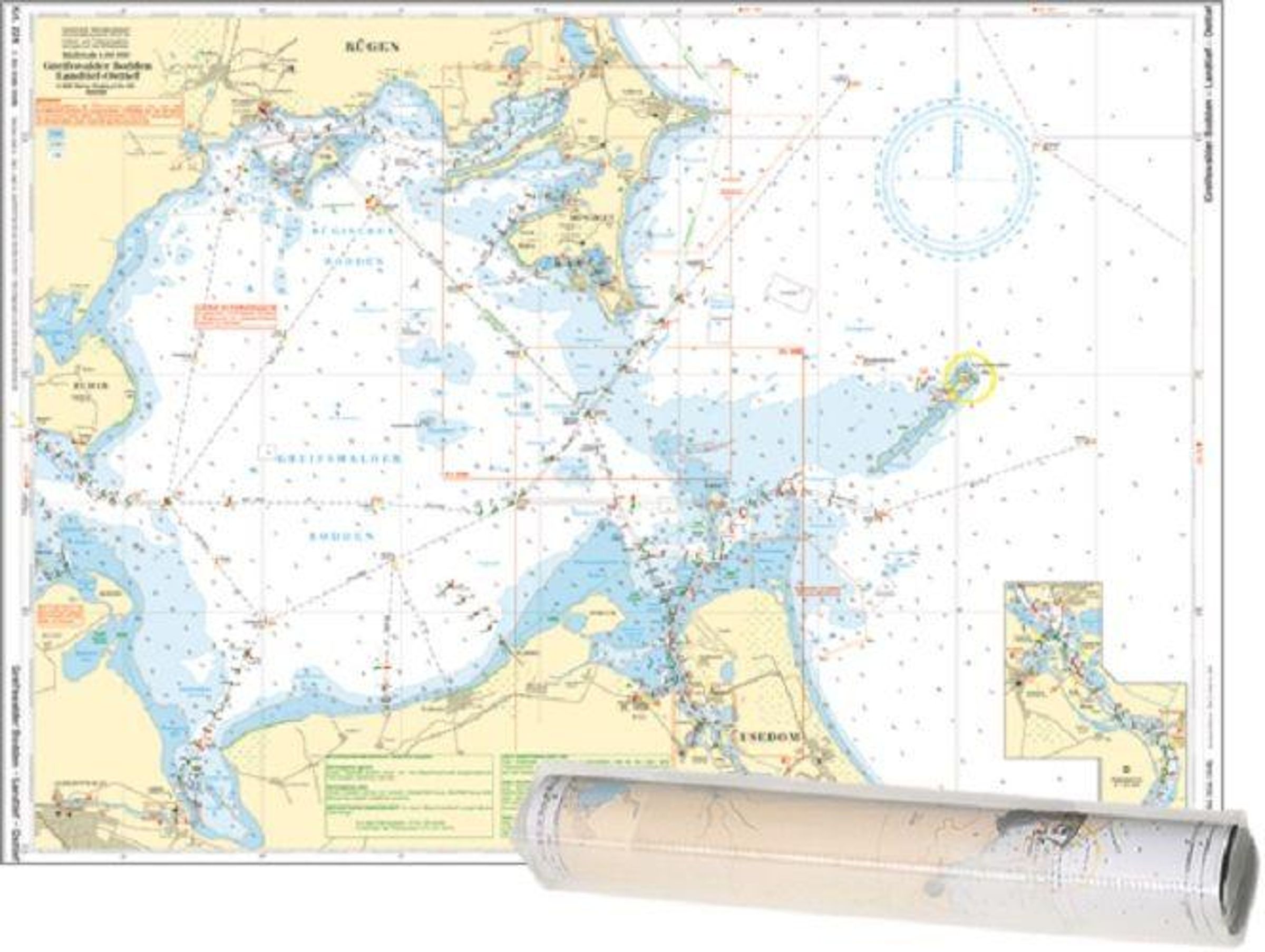 Diese bewährte DIN A 2-Karte des stark befahrenen Greifswalder Boddens südöstlich von Rügen bietet umfassende nautische Informationen zum Revier. Die dargestellten Wassertiefen basieren auf den aktuellen Vermessungsdaten des Bundesamtes für Seeschifffahrt und Hydrographie. Somit ist das sichere Befahren dieses relativ geschlossenen Seegebietes bis in die hintersten Winkel und Ecken der Buchten und Häfen möglich. Außerdem sind die engen Fahrwasser nördlich und südlich des Ruden sowie bis Peenemünde und Kröslin im Peenestrom in besonders hochauflösenden Detailkarten auf der Rückseite dieser Karte dargestellt und auch ein Detailplan des Peenestroms von Kröslin bis knapp nördlich von Wolgast fehlt nicht.