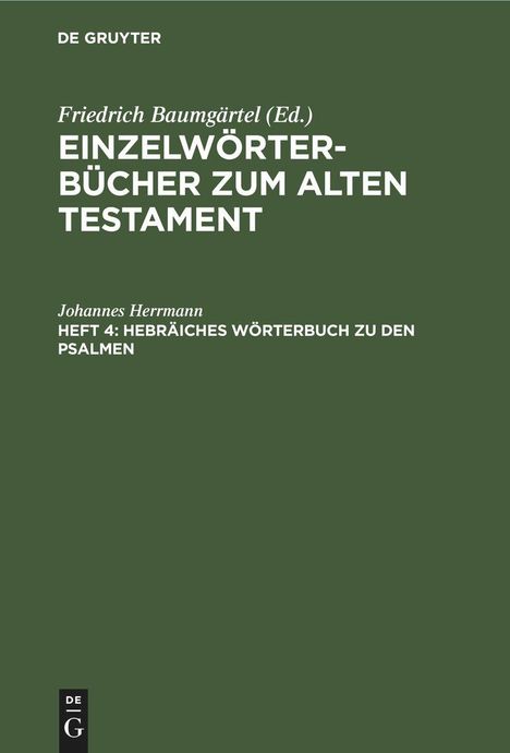 Johannes Herrmann: Hebräiches Wörterbuch zu den Psalmen, Buch, Buch