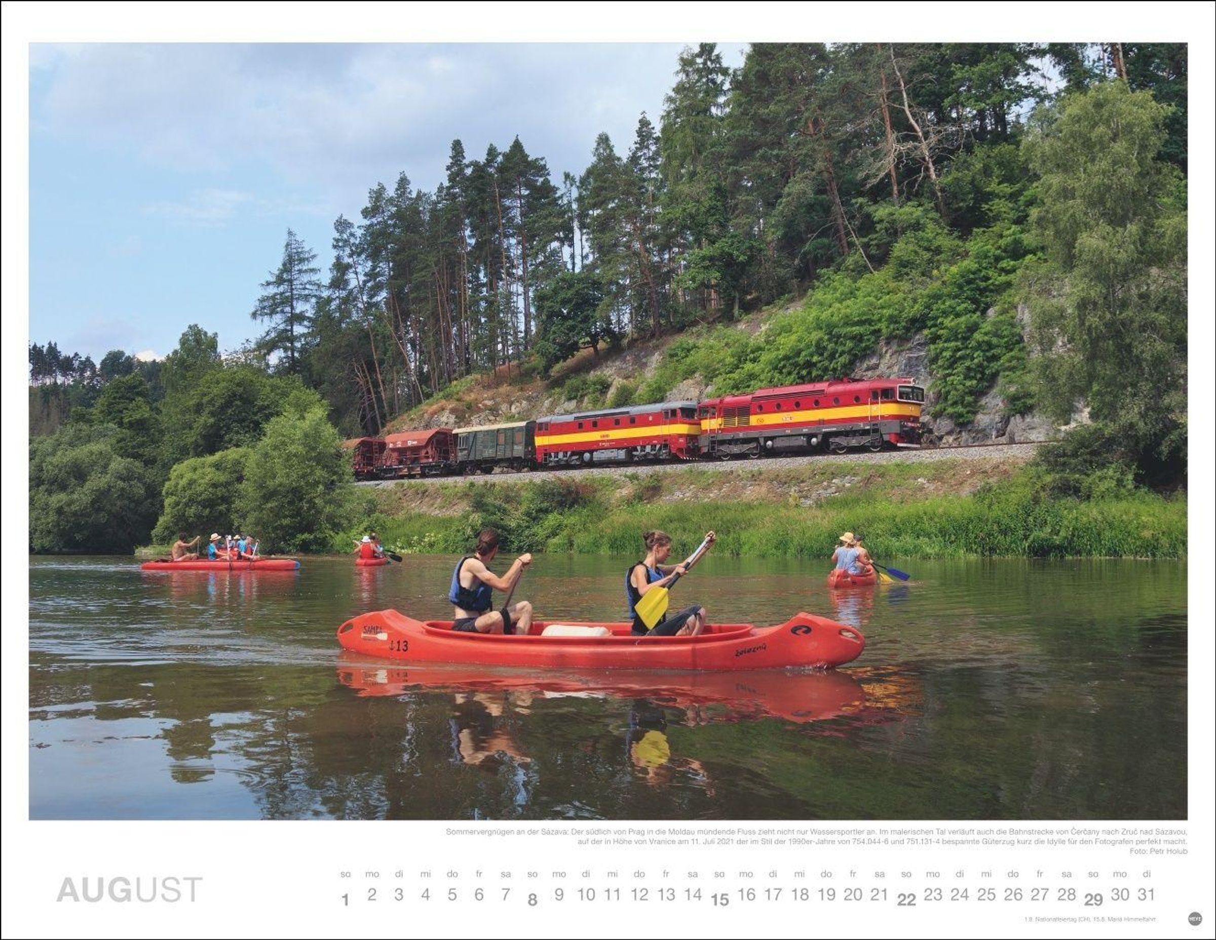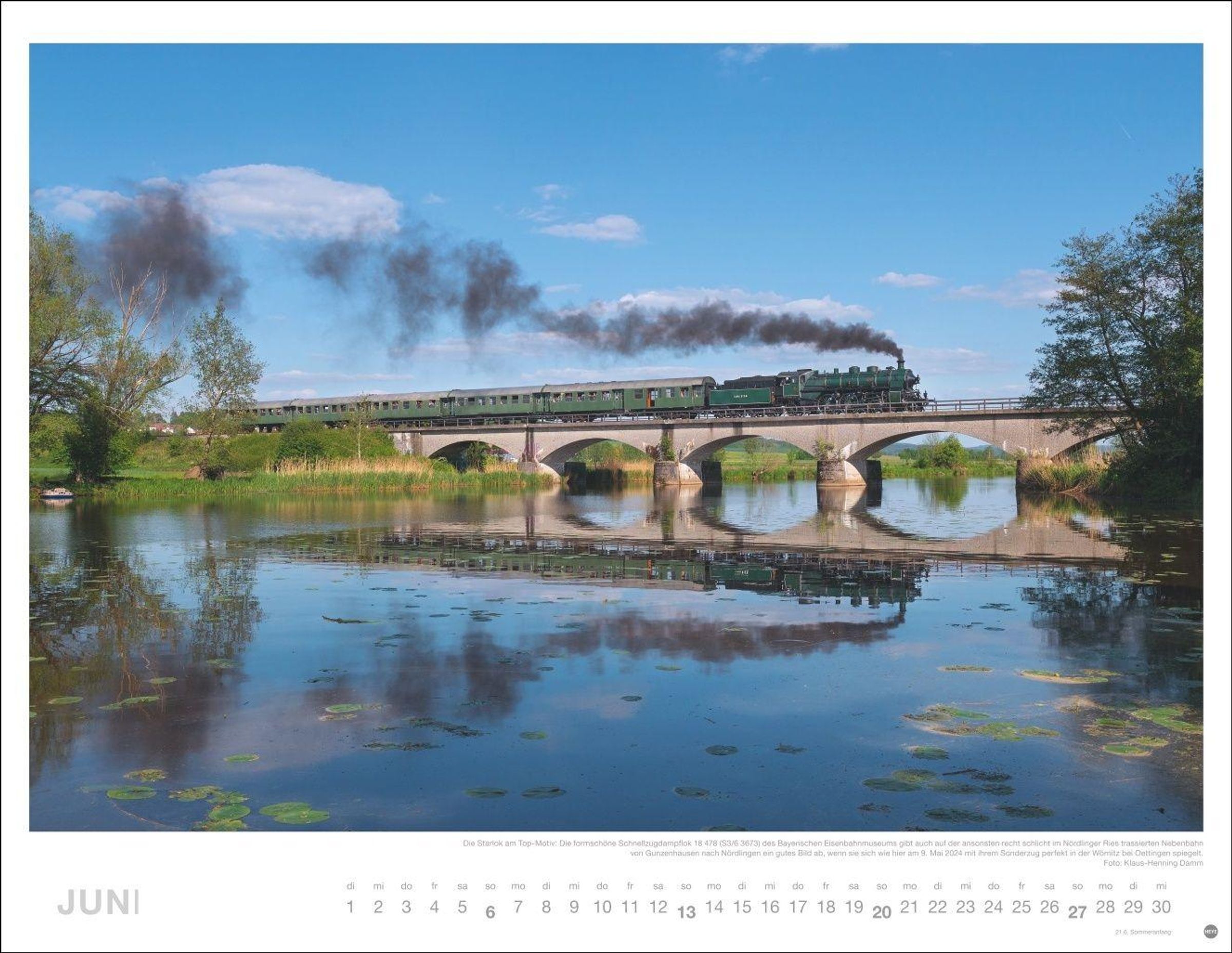 Der Posterkalender im Format 44 x 34 cm zeigt Eisenbahnen und Loks in allen Details