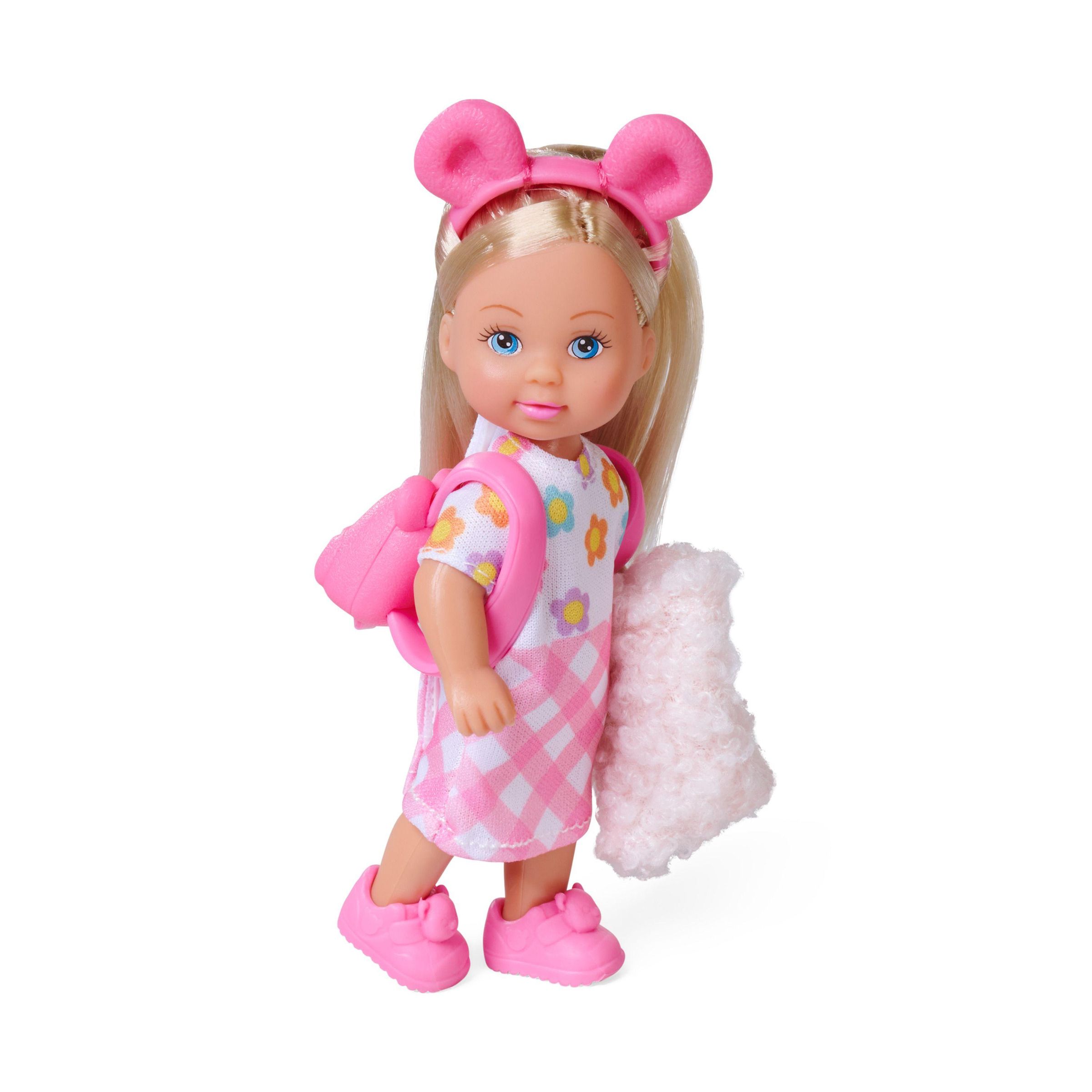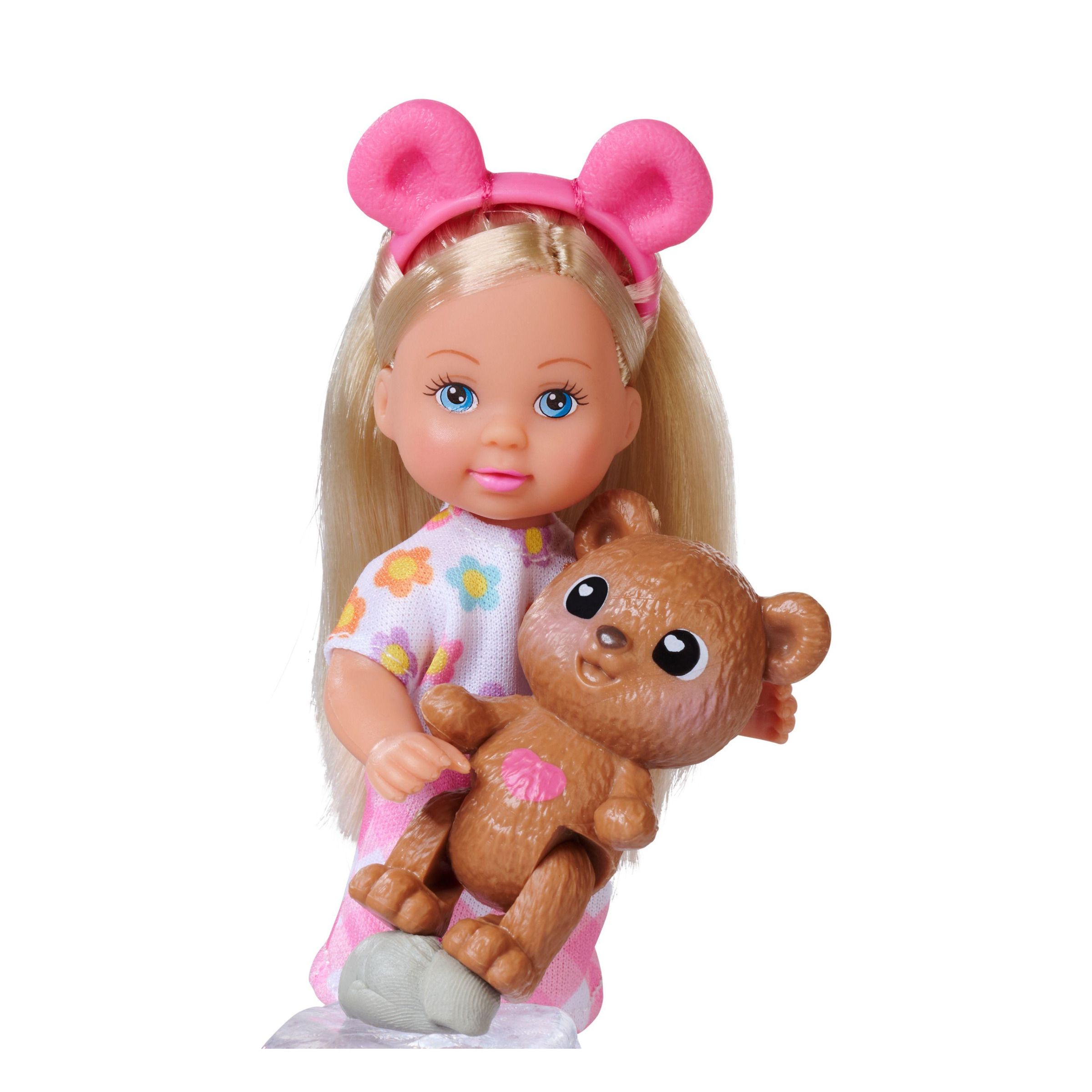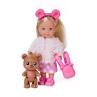 Evi mit einer flauschigen Jacke, mit Bärenhaarreif,-schuhen, -rucksack, und Teddy, 12cm, WB, 3J+