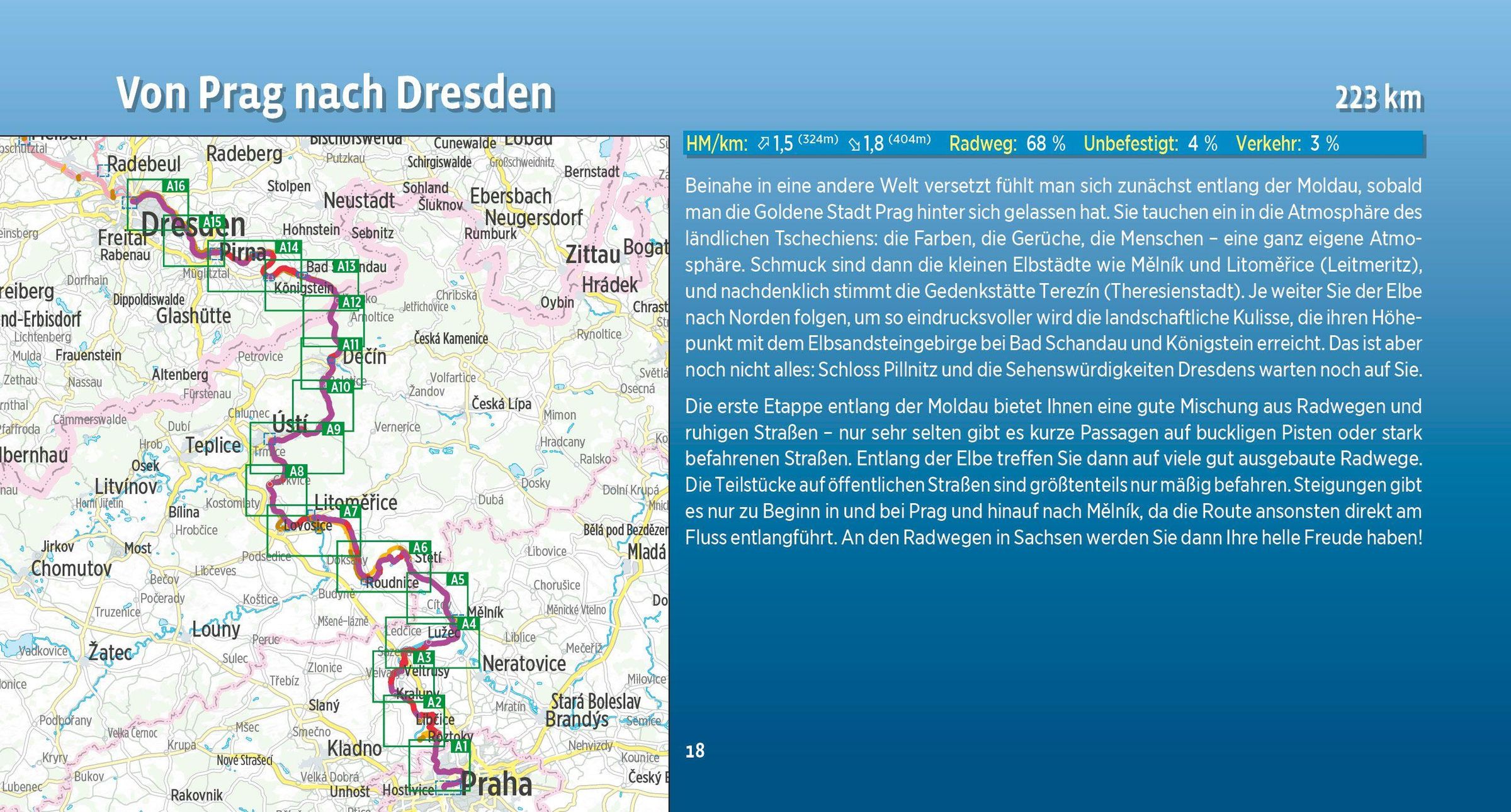 Der nächste Radurlaub soll ein ganz besonderes Erlebnis werden? Dann sollten Sie Ihr Rad schnappen und sich auf den Weg von Prag über Dresden nach Magdeburg machen. Auf 521Kilometern Radroute an der Elbe erwartet Sie eine Mischung aus aufregendem Abenteuer, gemütlichem, erholsamen und naturverbundenen Radurlaub und einer höchst interessanten Kulturreise. Natur, Sport, Kultur und tschechische Lebensart - was können Sie mehr von einem Urlaub im Sattel erwarten: die kulturhistorisch interessanten Großstädte Prag und Dresden, die schmucken böhmischen Städtchen mit ihrem ganz eigenen Flair, das landschaftlich reizvolle Elbsandsteingebirge, Porzellan aus Meißen, die Sächsische Weinstraße, die Lutherstadt Wittenberg, die weiten Elbauen und zu guter Letzt die Stadt Magdeburg, um nur einiges aufzuzählen.