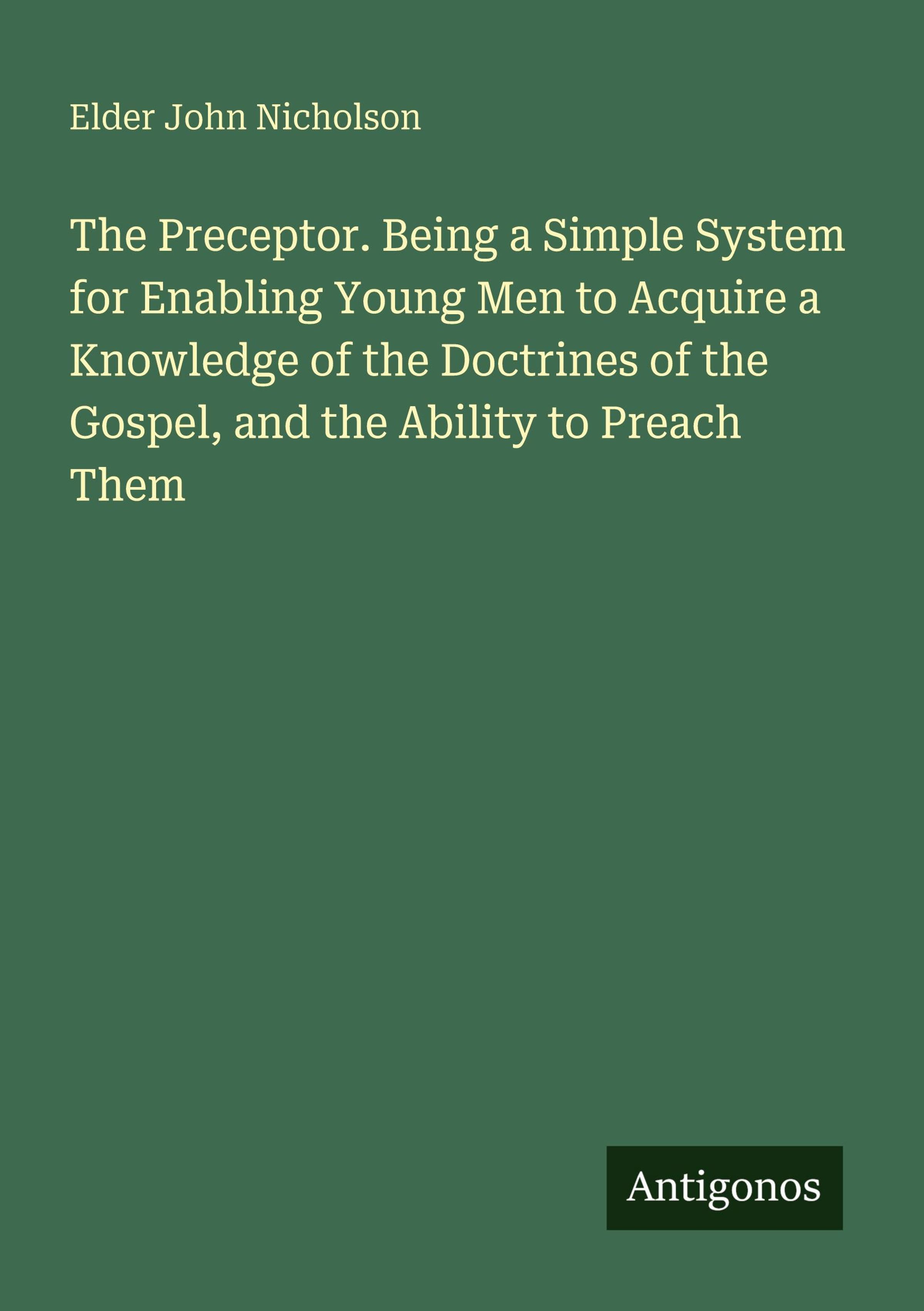 The Preceptor. Being a Simple System for Enabling Young Men to Acquire a Knowledge of the Doctrines of the Gospel, and the Ability to Preach Them