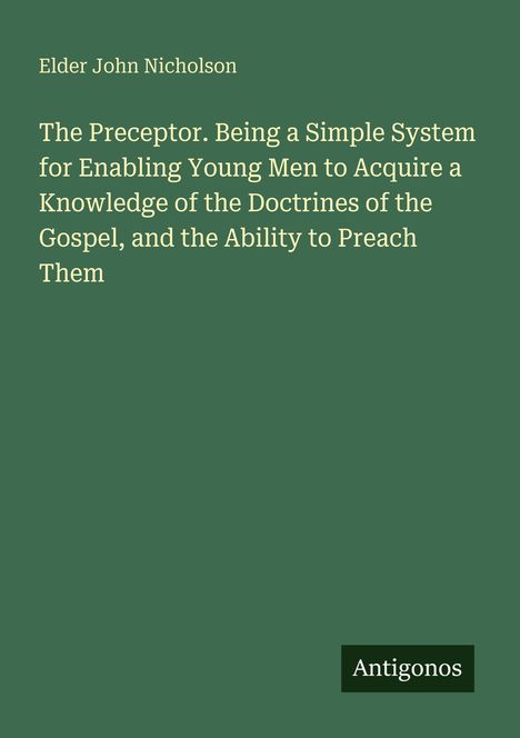 Elder John Nicholson: The Preceptor. Being a Simple System for Enabling Young Men to Acquire a Knowledge of the..., Kartoniert / Broschiert
