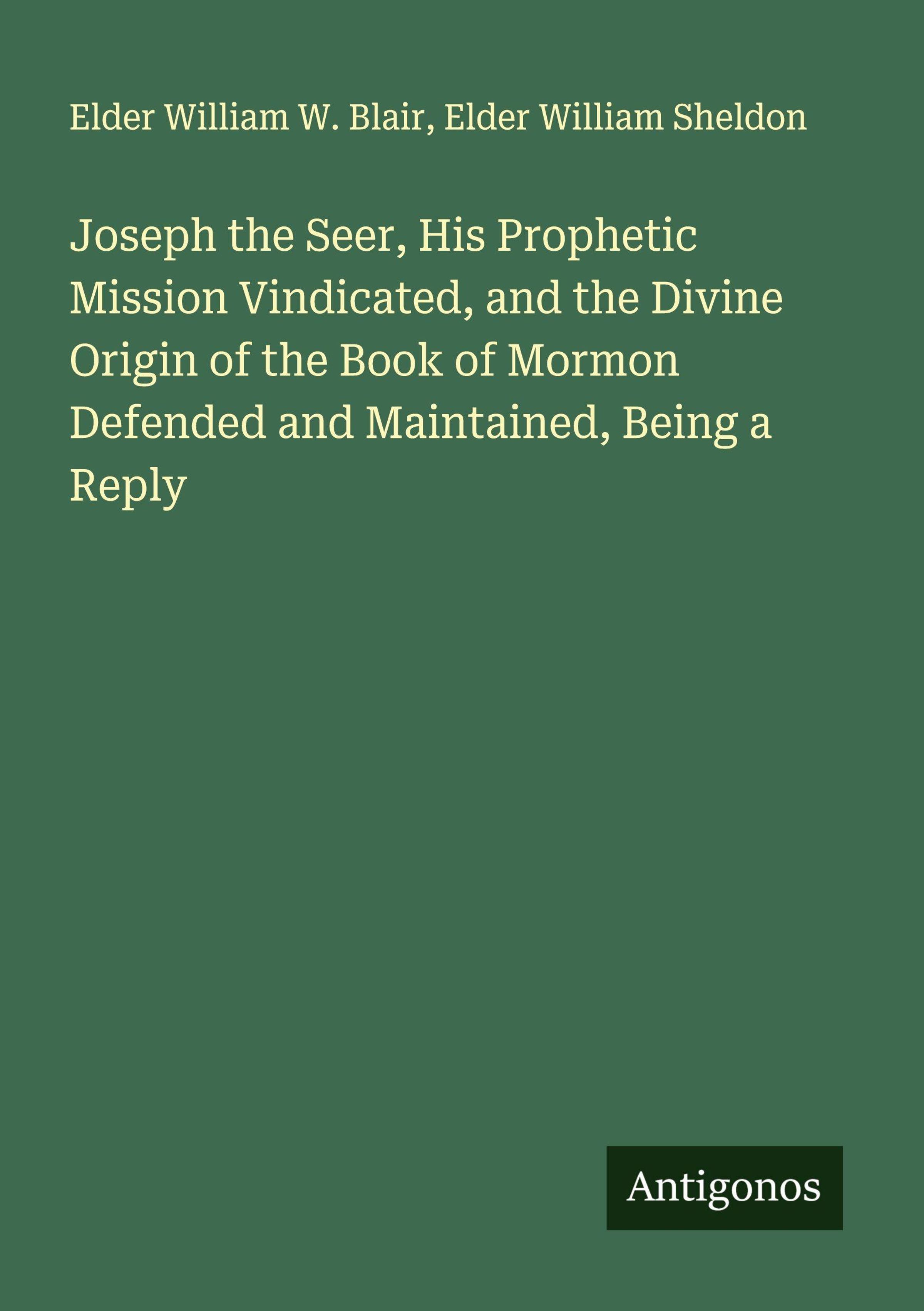 Joseph the Seer, His Prophetic Mission Vindicated, and the Divine Origin of the Book of Mormon Defended and Maintained, Being a Reply