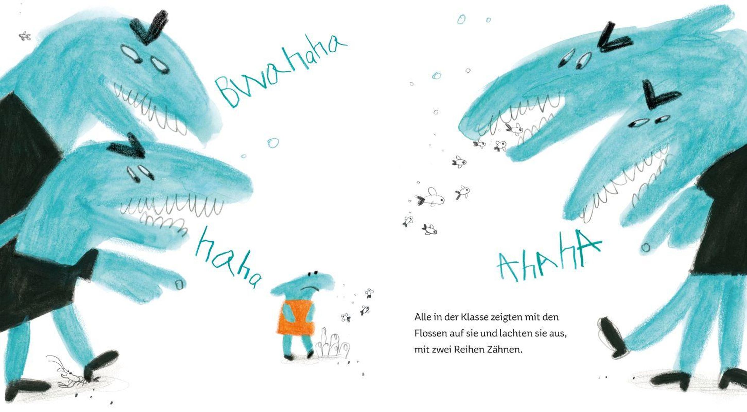 Lena Repetur zeigt in 'Hai mit Herz' mit luftig-leichten Bildern, dass man oft doch nicht so alleine ist, wie man zunächst denkt; und dass jede ihren Platz finden kann, wenn es sich richtig anfühlt, so wie man ist. Sie erzählt auch von der Möglichkeit, aus Liebe die Eigenheiten des anderen zu akzeptieren und anzunehmen.