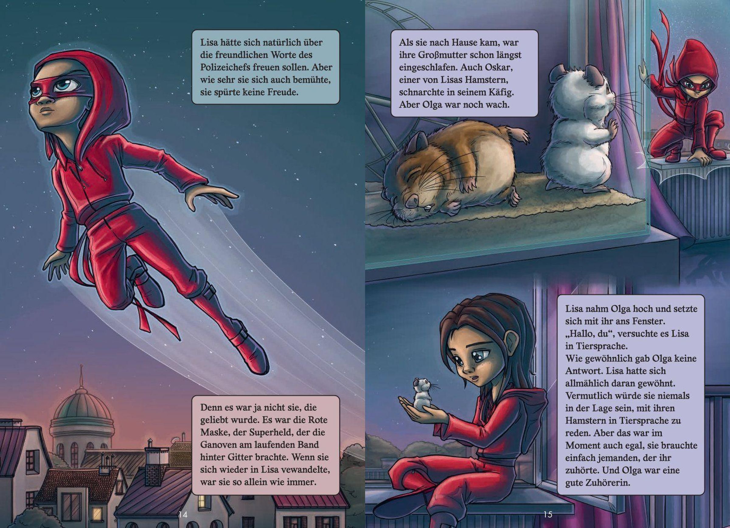 Der Kampf gegen Goliath Das Leben als Superheldin hat vieles für Lisa verändert. Sie hat an Selbstvertrauen gewonnen und eine große Aufgabe gefunden. Doch in der Schule ist sie immer noch die Außenseiterin und ohne Freunde - sie ist allein. Nur abends, wenn sie über die Stadt fliegt und das Böse bekämpft, vergisst Lisa ihre Sorgen. Alle Ganoven haben Angst vor ihr, der Roten Maske. Doch dann bekommt Lisa es mit Wolfgang, dem gefährlichsten Bösewicht der Stadt und dem Anführer der gnadenlosen Wolf-Gang zu tun. Und der hat sich geschworen, die Rote Maske um jeden Preis aus dem Verkehr zu ziehen. Lisa dämmert, dass ihre Chancen gegen den übermächtigen Erzfeind - trotz Superheldenhandbuch - schwindend gering sind. Findet sie dennoch einen Weg, Wolfgang die Stirn zu bieten? Ein rasanter Comic über ein Mädchen, das immer wieder vor neue Herausforderungen gestellt wird, die sie mutig annimmt und an denen sie wächst.