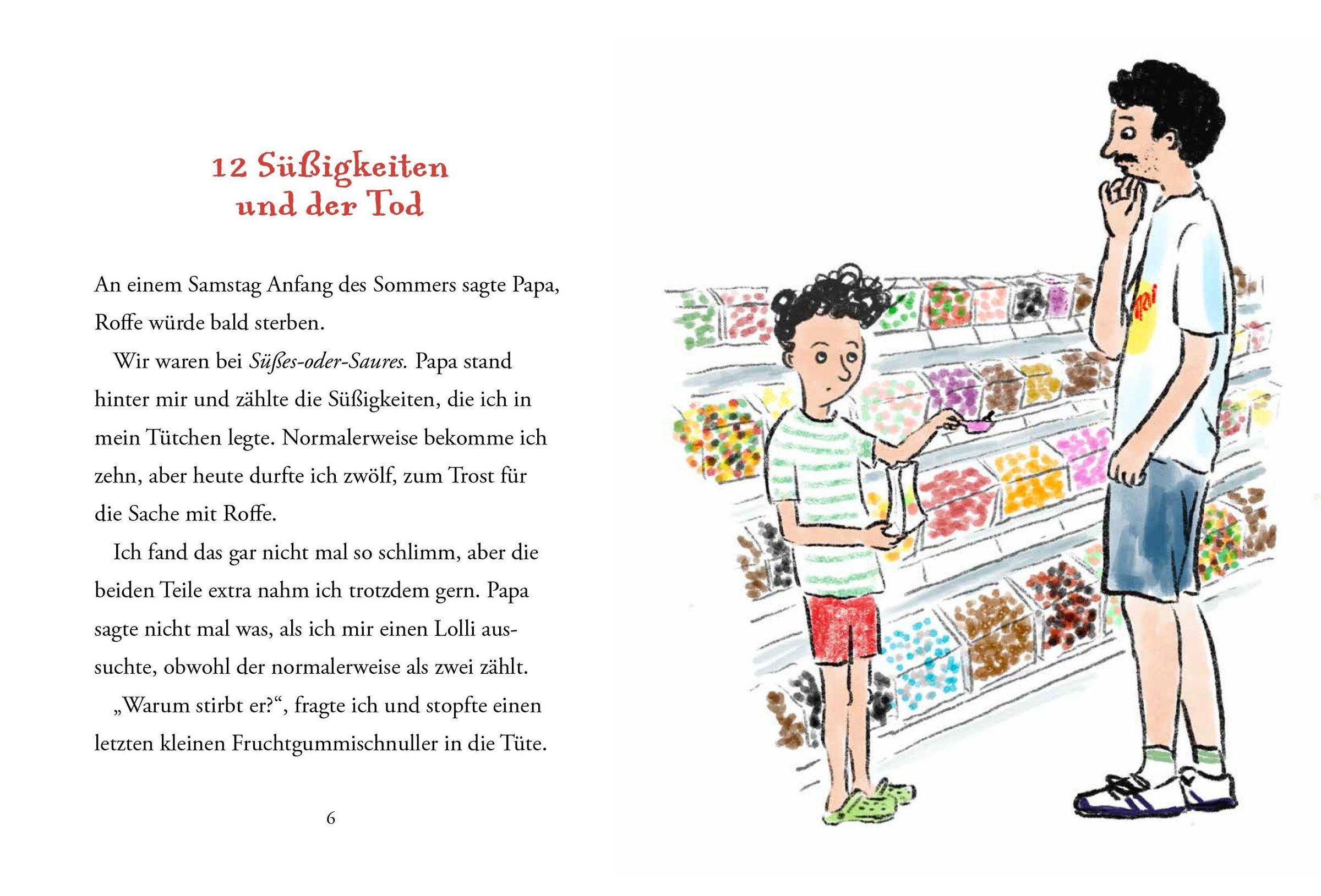 Roffe wird sterben. Aber das macht Uno nicht viel aus. Roffe ist schließlich schon alt und nicht einmal sein echter Opa. Uno kommt trotzdem mit Papa ins Krankenhaus, um Abschied zu nehmen. Dort trifft er auf die gleichaltrige Katjes. An ihr ist nicht nur der Name ungewöhnlich. Katjes ist auch sonst nicht wie die anderen Kinder in Unos Klasse. Bei ihr fühlt sich der schüchterne, Fremden gegenüber schweigsame Uno nicht komisch und falsch. Wenn Katjes da ist, kriegt Uno sogar den Mund auf. Am liebsten spielen die beiden im Aufenthaltsraum der Palliativstation Weltuntergang - mit Kometenhagel, Überschwemmung und allem Drum und Dran.