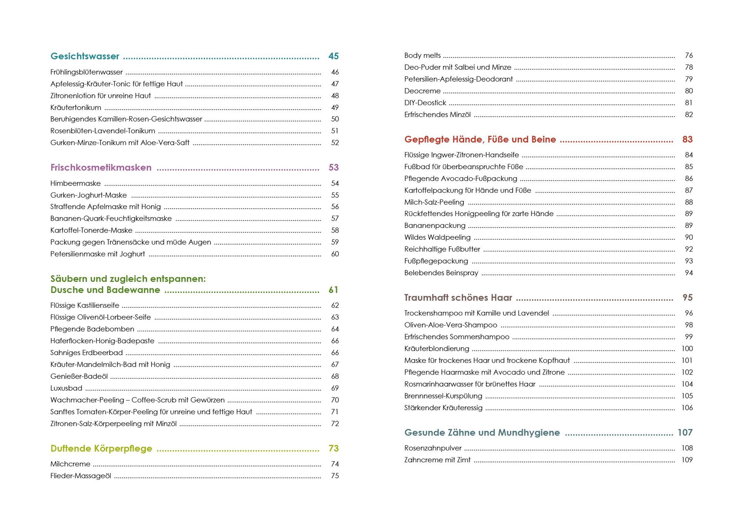 Sanfte Pflege für Haut und Haar - nachhaltig, natürlich und hausgemacht! Ganz ohne Vorkenntnisse können Sie hautpflegende Gesichtsmasken, Gesichtswasser, Naturdeos, exotisches Coffee-Scrub mit Gewürzen, erfrischendes Zitronenpeeling, Körperbutter und vieles mehr im Handumdrehen selbst herstellen. Natürliche Inhaltsstoffe schonen Haut und Geldbeutel gleichzeitig. Die duftenden Wellnessprodukte wie Badebomben, Flieder-Massageöl und entspannende Badeöle eignen sich auch hervorragend als Geschenk.