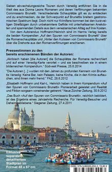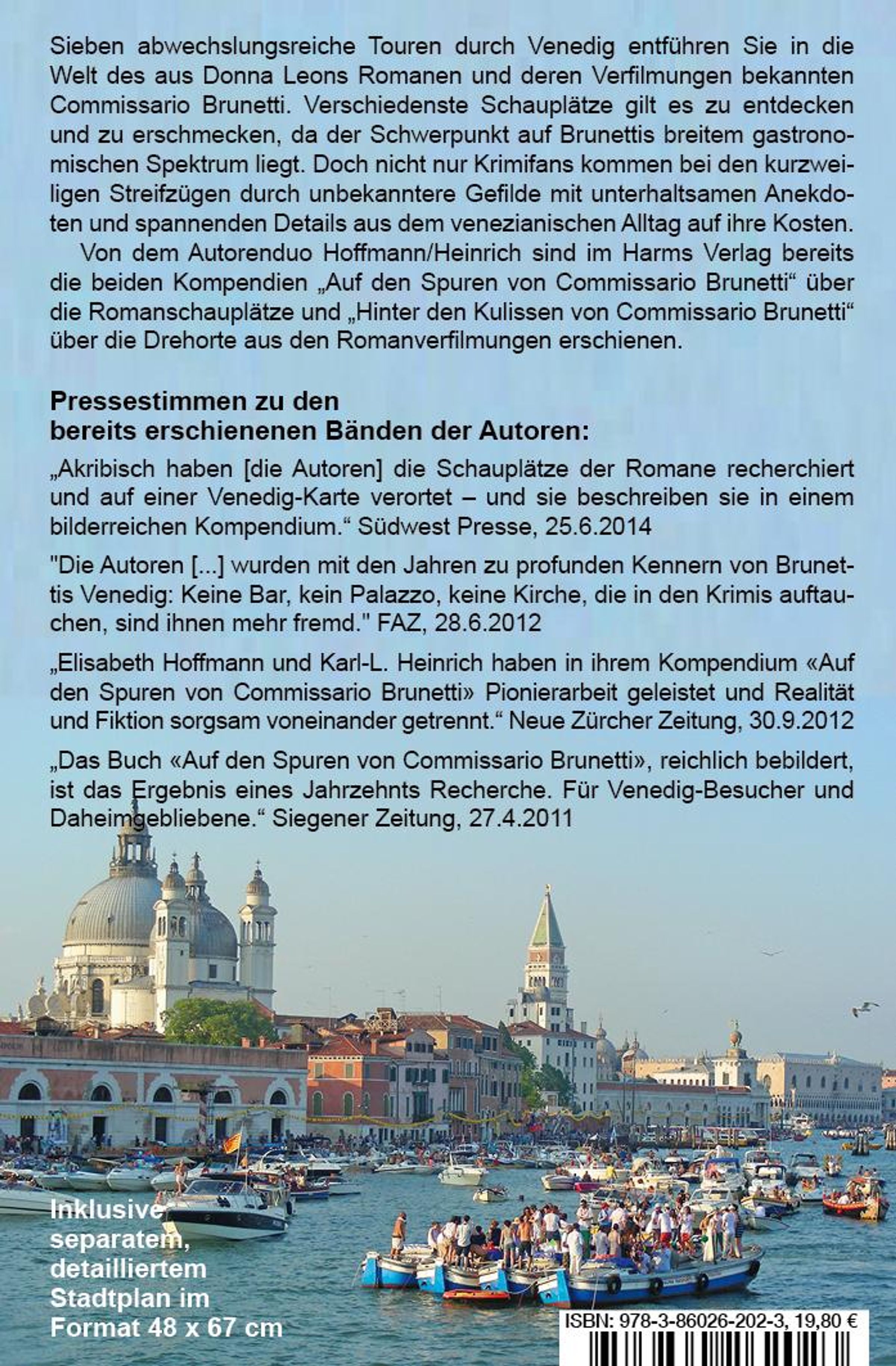 Sieben abwechslungsreiche Touren durch Venedig entführen Sie in die Welt des aus Donna Leons Romanen und deren Verfilmungen bekannten Commissario Brunetti. Verschiedenste Schauplätze gilt es zu entdecken und zu erschmecken, da der Schwerpunkt auf Brunettis breitem gastronomischen Spektrum liegt. Doch nicht nur Krimifans kommen bei den kurzweiligen Streifzügen durch unbekanntere Gefilde mit unterhaltsamen Anekdoten und spannenden Details aus dem venezianischen Alltag auf ihre Kosten. Zum Buch gehört ein separater, detaillierter Stadtplan im Format 67x48 cm mit einer reich bebilderten Canal-Grande-Tour auf der Rückseite.
