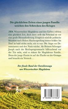 1924: Winzertochter Magdalena und ihre Lieben erleben eine glücklich Zeit, doch dann stellt das Schicksal sie vor eine große Herausforderung. Zeitgleich wird die politische Situation mit Hitlers Machtergreifung immer heikler. Im Dorf ist bald nichts mehr, wie es war: Die Jahre sind geprägt von Angst vor Denunzianten und den Nazis. Als Heiners Schwager Joseph nach der Reichsprogromnacht hilfesuchend vor der Tür steht, wird es riskant für Magdalenas Familie. Denn der junge Zionist ist auf der Flucht vor der Gestapo und braucht ein Versteck ...