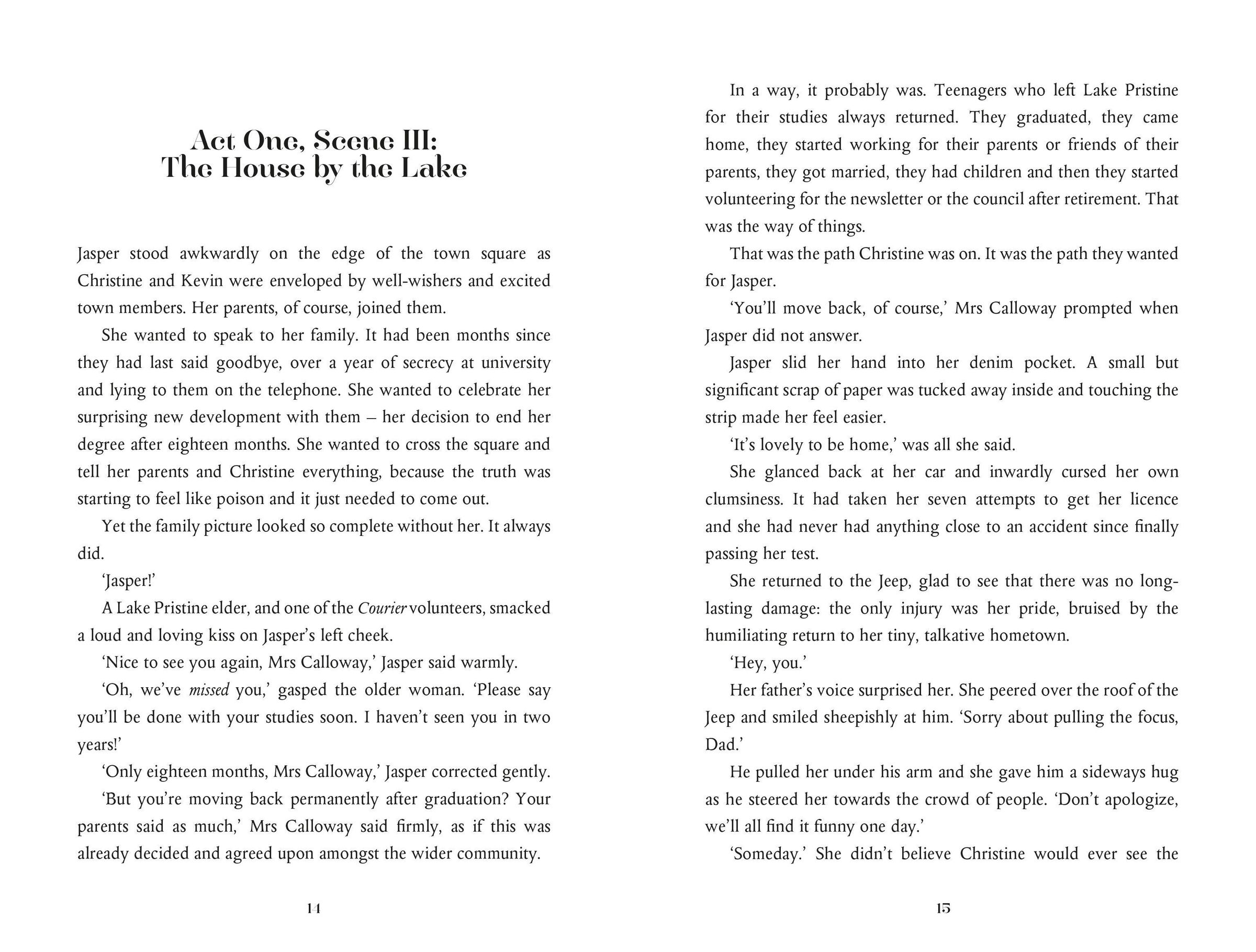Jasper Montgomery is back in Lake Pristine for one reason: to say goodbye. But before long small-town tensions start to rise, and a certain brooding film buff starts to look like a very big reason to stay . . .