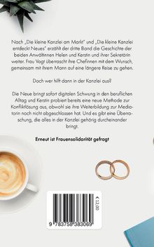 Nach "Die kleine Kanzlei am Markt" und "Die kleine Kanzlei entdeckt Neues" erzählt der dritte Band die Geschichte der beiden Anwältinnen Helen und Kerstin und ihrer Sekretärin weiter. Frau Vogt überrascht ihre Chefinnen mit dem Wunsch, gemeinsam mit ihrem Mann auf eine längere Reise zu gehen. Doch wer hilft dann in der Kanzlei aus? Die Neue bringt sofort digitalen Schwung in den beruflichen Alltag und Kerstin probiert bereits eine neue Methode zur Konfliktlösung aus, obwohl sie ihre Weiterbildung zur Mediatorin noch nicht abgeschlossen hat. Und es gibt eine Überraschung, die alles in der Kanzlei gehörig durcheinander bringt. Erneut ist Frauensolidarität gefragt.