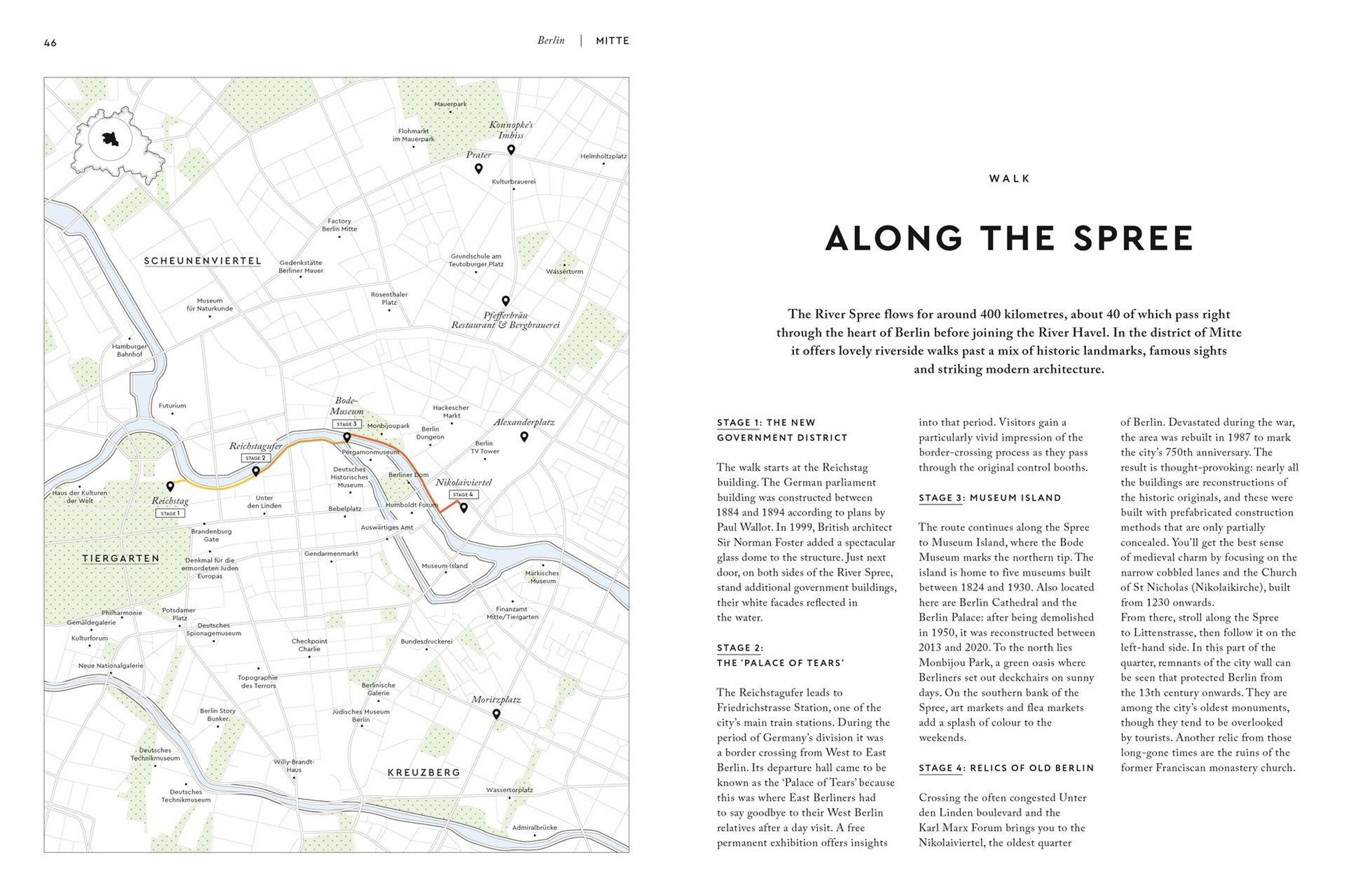 Historic buildings alongside modern houses and spray-painted prefabricated buildings covered in colorful graffiti: take a variedvisual journey through Berlin with this illustrated travel book.Selected portraits offer visual and personalinsights into Berlin institutions such as Clärchens Ballhaus and the Center for Contemporary Art. Experience theflair and lifestyle of Berlin's individual districts on your visual city tour, or escape the hustle and bustle of the big city with a trip to the greater Berlin area - to Potsdam or Wannsee. Discover the city's eventful past on entertaining walks along the Spree, past the Reichstag building and Museum Island to the historic Nikolaiviertel. In each of the neighborhoods featured, the travel picture book provides a neighborhood map with a specific route plan for your very own personal Berlin trip.