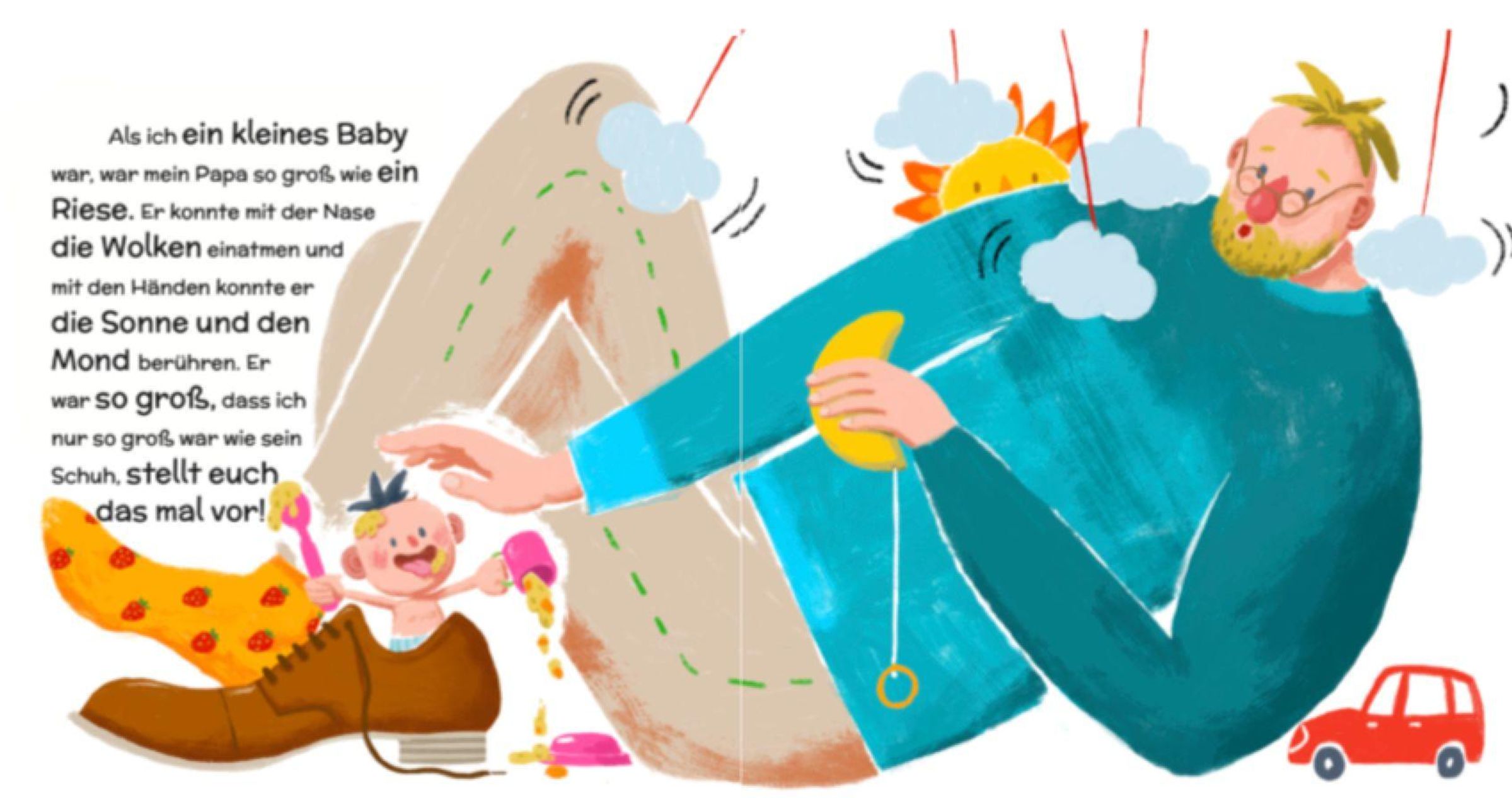 "Mein Papa schrumpft" von Ema Pongraši¿ ist ein liebevolles Bilderbuch über das Aufwachsen, die Beziehung zwischen Vater und Sohn - und über das Abschiednehmen. Aus der Sicht eines kleinen Jungen wird die Welt mit Humor und kindlicher Weisheit betrachtet: Während er selbst größer und älter wird, scheint sein Papa immer kleiner zu werden. Mit Witz und Feingefühl entdeckt der Junge, dass eines Tages sein Papa so winzig sein wird, dass er verschwinden könnte. Doch anstatt dies als traurig zu empfinden, erkennt er, dass sein Vater für immer in seinem Herzen weiterleben wird. Ein warmherziges und mutiges Buch, das Kindern einen sanften Zugang zu großen Themen wie Vergänglichkeit, Liebe und Erinnerung eröffnet.