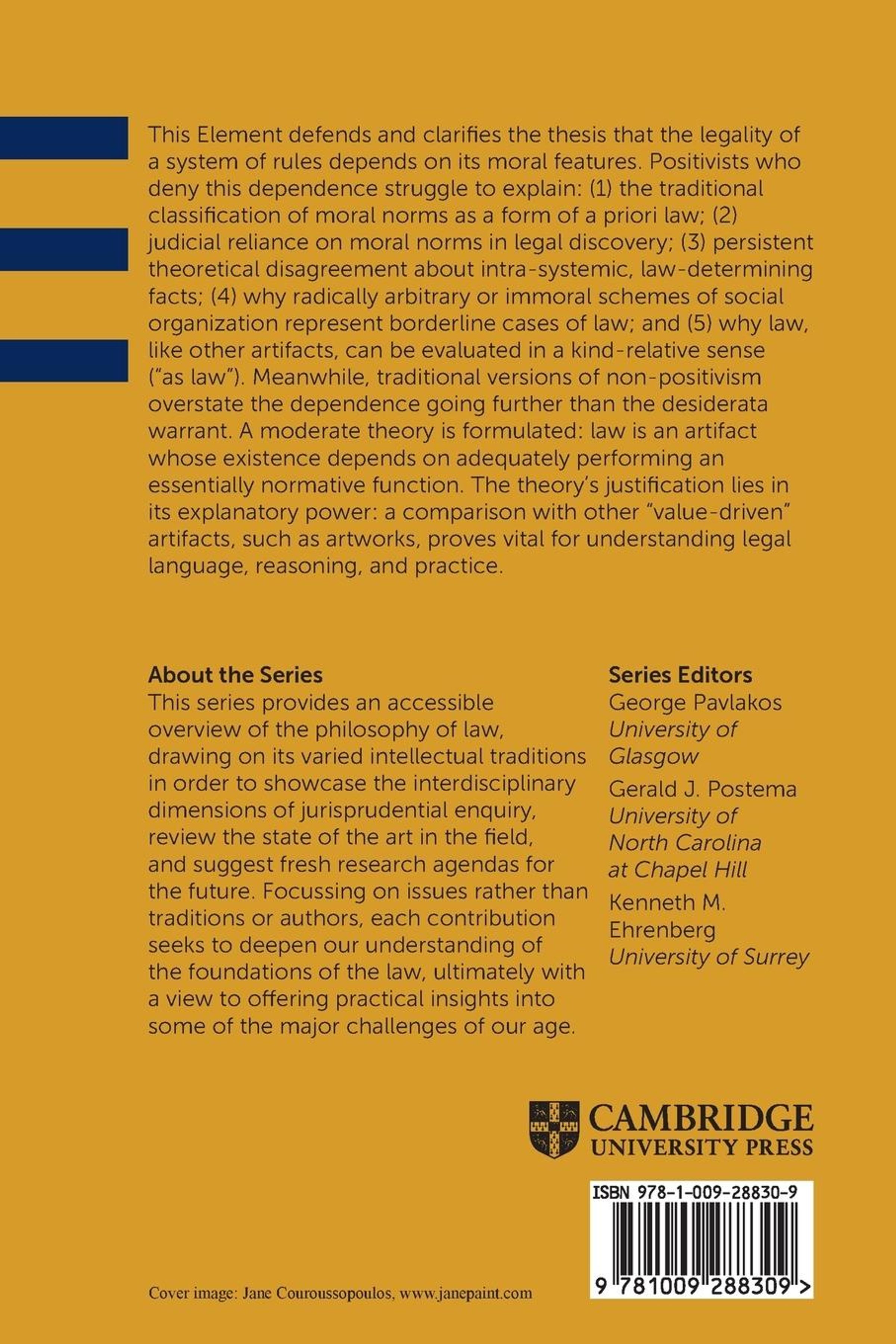 This Element defends and clarifies the thesis that the legality of a system of rules depends on its moral features. Law is an artifact whose existence depends on adequately performing an essentially normative function. Its justification lies in its explanatory power which proves vital for understanding legal language, reasoning, and practice.