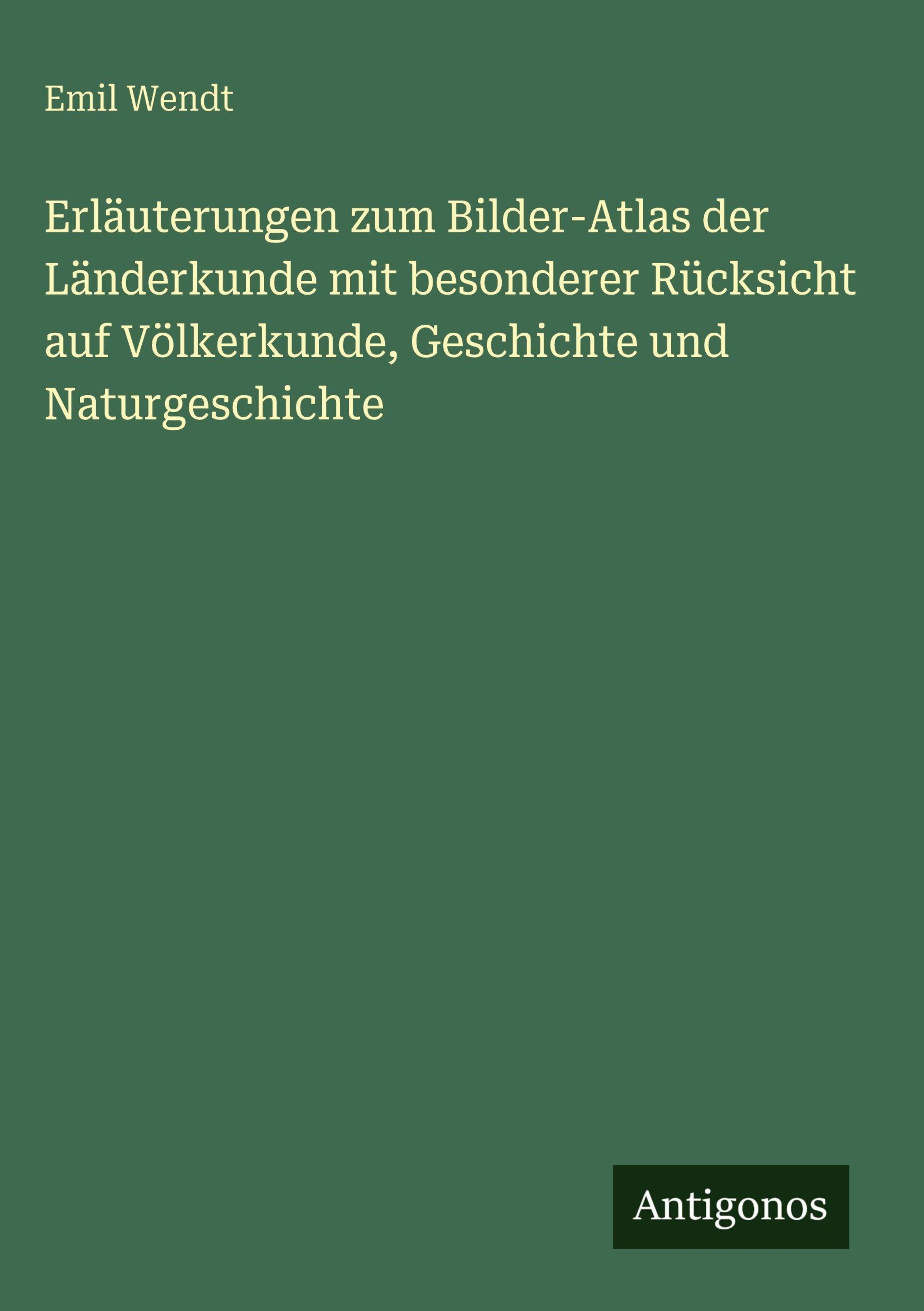 Emil Wendt: Erläuterungen zum Bilder-Atlas der Länderkunde mit besonderer Rücksicht auf Völkerkunde, Geschichte..., Gebunden