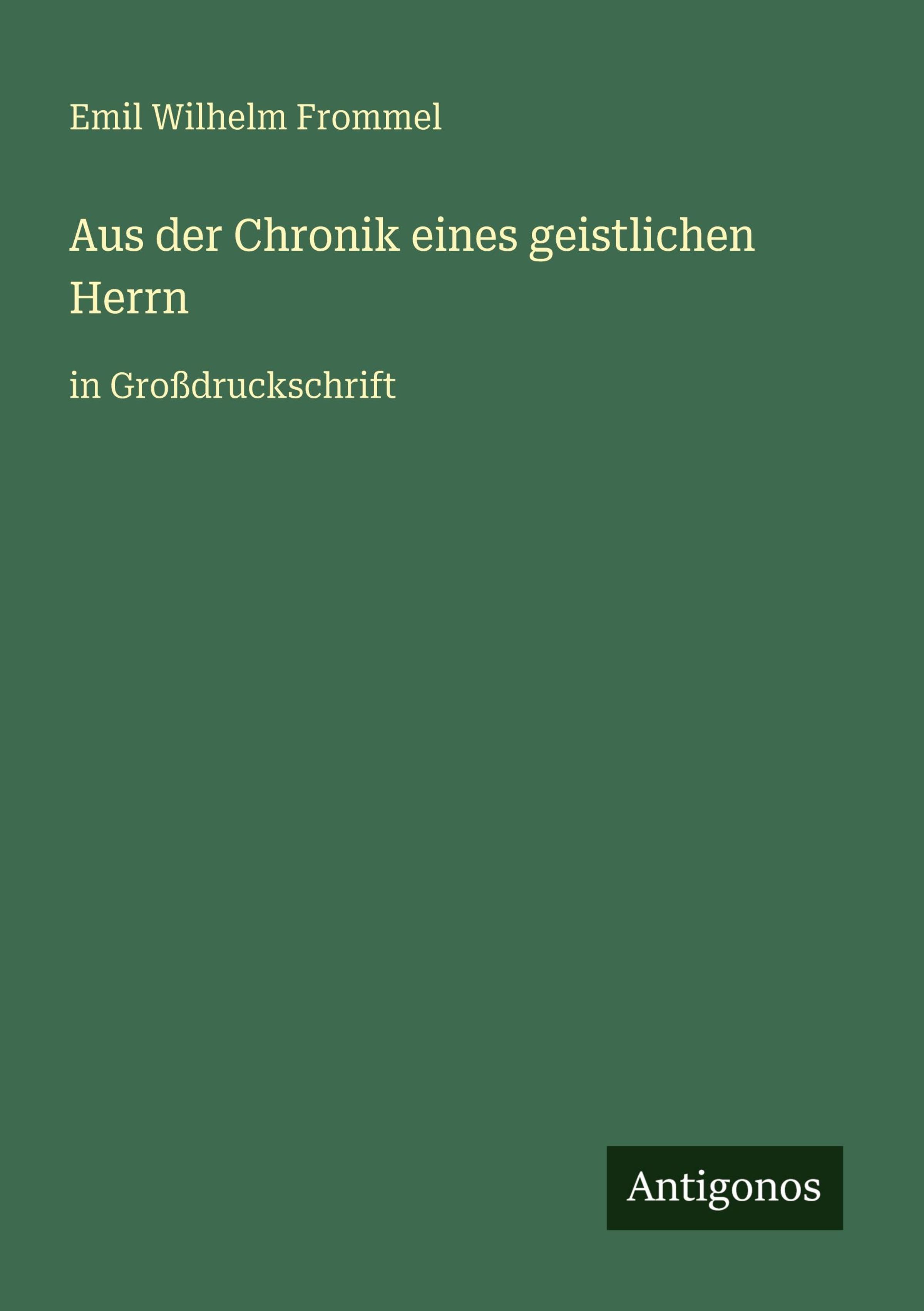 Emil Wilhelm Frommel: Aus der Chronik eines geistlichen Herrn, Kartoniert / Broschiert