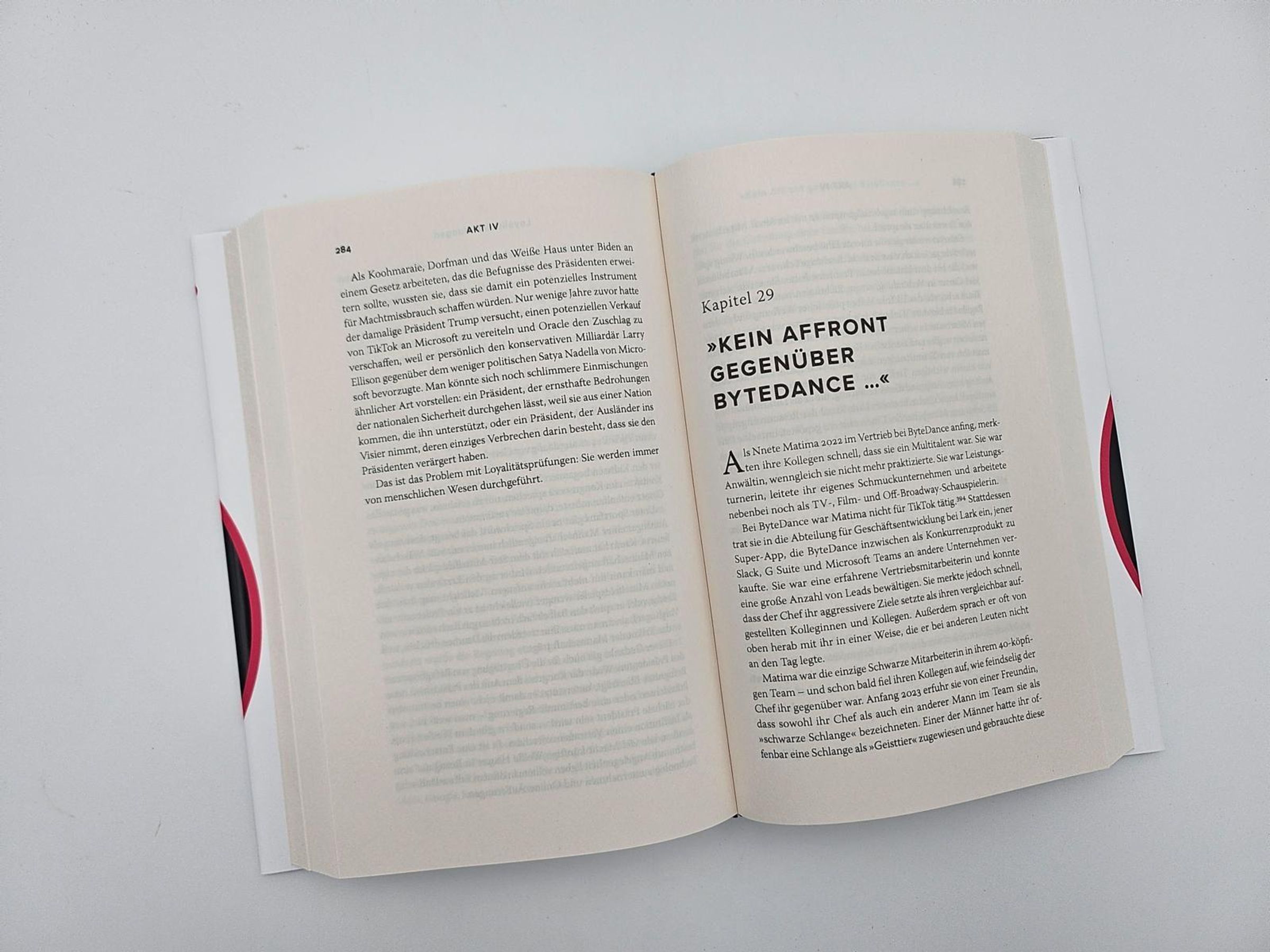 Die Forbes- Investigativjournalistin Emily Baker-White erzählt die Geschichte des kometenhaften Aufstiegs der AppTikTok, die seit ihrem offiziellen Launch im Jahr 2018 die Social-Media-Welt revolutionierte, Popkultur und Öffentlichkeit weltweit veränderte, und bereits mehr als1, 6 Milliarden User in über150 Ländern aufweist. Baker-Whites Buch besteht aus den Enthüllungen ihrer spektakulären Investigativreche, die mit exklusiven Informationen von über 100 TikTok-Insidern die engen Verbindungen des chinesischen Staats zum TikTok-Konzern aufdeckt. Spannend wie ein Thriller enthüllt Baker-White Machtmissbrauch, Datenschutzverletzungen und mutmaßliche Algorithmus-Manipulationen bei TikTok -, bis sie und andere Journalisten bedrohlicherweise selbst ins Fadenkreuz des chinesischen TikTok-Mutterkonzerns ByteDance geraten.