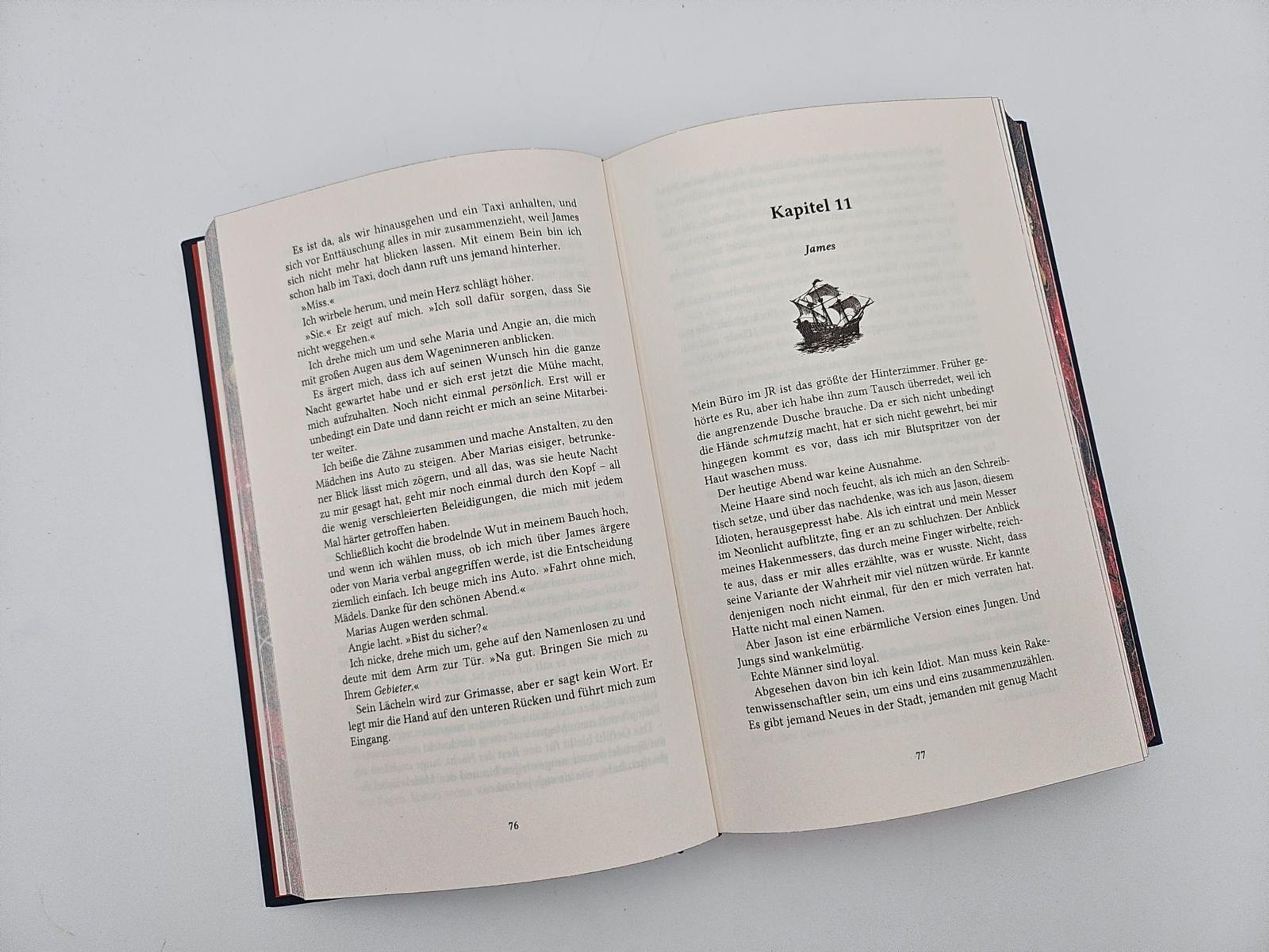 Hookedist ein düsterer Liebesroman und der erste, unabhängig lesbare, Teil der Never-After-Serie: einer Sammlung von gebrochenen Märchen, in denen die Bösewichte die Helden sind. Es handelt sich nicht um eine Nacherzählung und nicht um Fantasy. Hookedenthält Themen und Inhalte, die möglicherweise nicht für alle Leser: innen geeignet sind. Alle Warnhinweise zum Inhalt findet ihr auf der Webseite der Autorin.