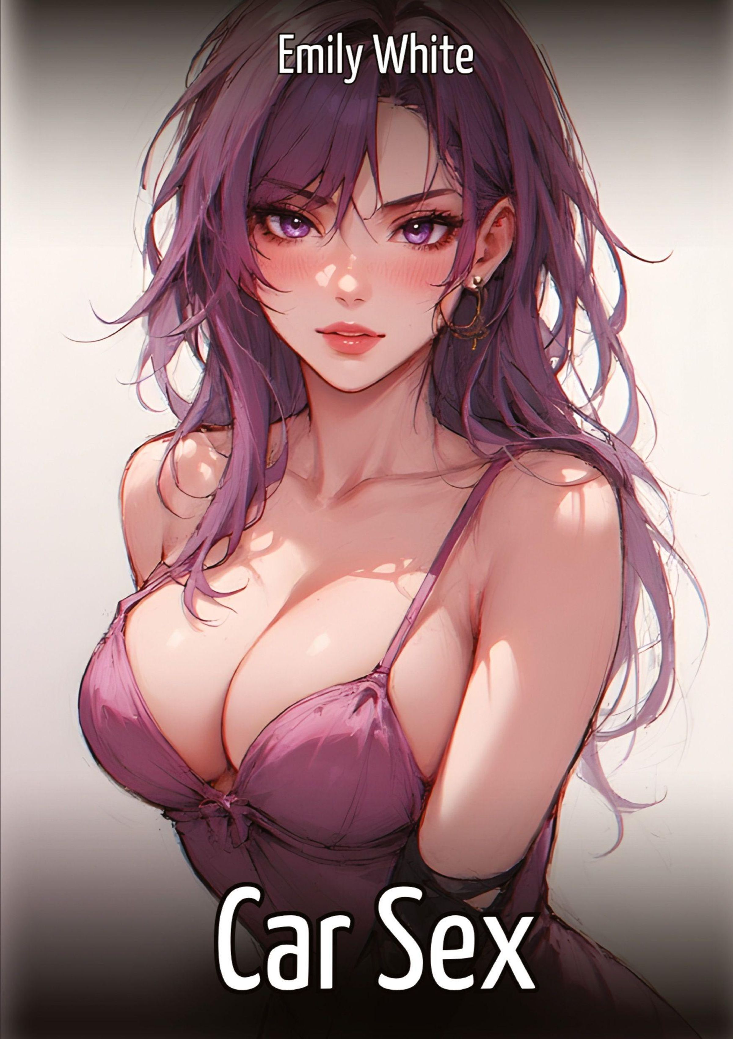 Text: "Emily White", "Car Sex". Eine Anime-Illustration einer Frau mit lila Haaren in einem lila Oberteil., Buch