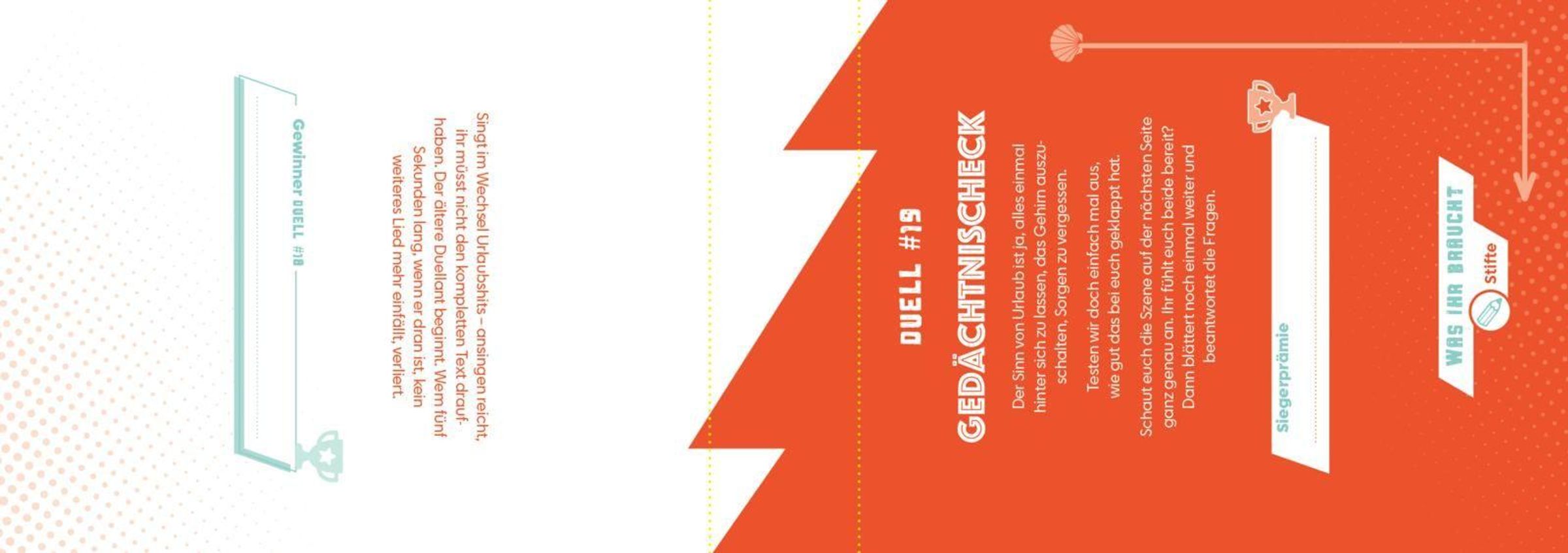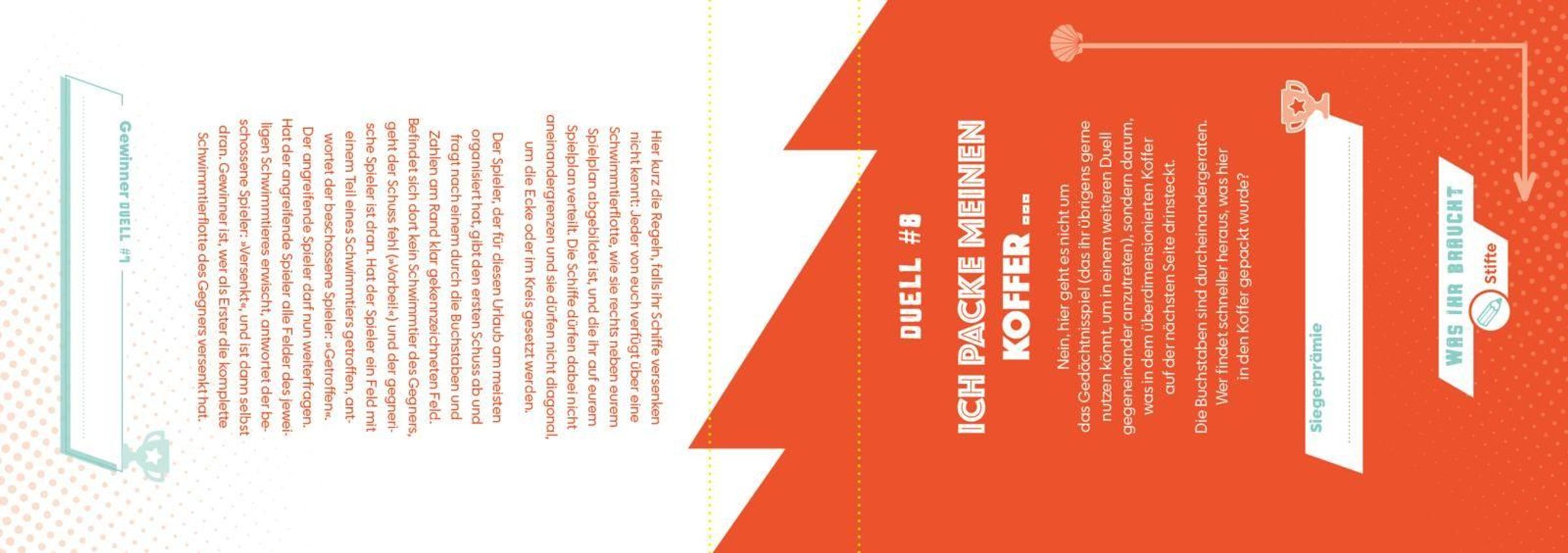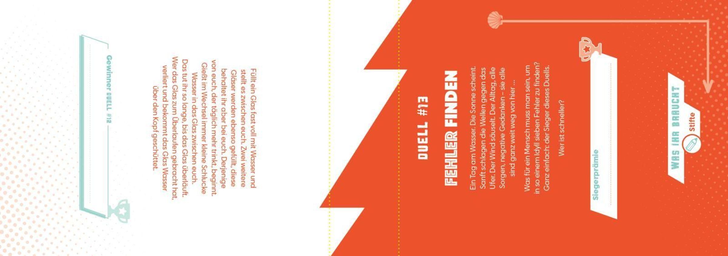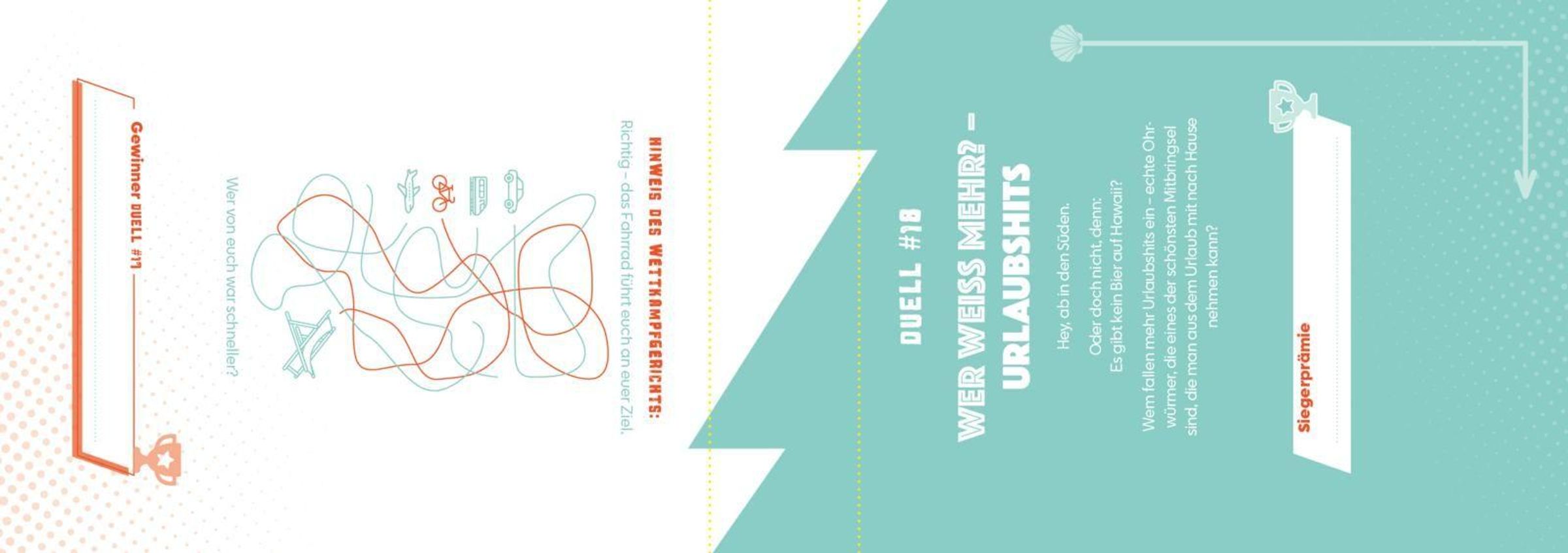 Leerlauf auf langen Reisen? Fehlanzeige! Dieses interaktive Buch bringt frischen Schwung in jede Reise. Egal ob im Bus, im Zug, im Flugzeug oder entspannt am Strand, mit der bunten Auswahl an kniffligen Logikrätseln, kreativen Zeichenaufgaben, blitzschnellen Wissensduellen und kleinen Challenges sorgt Das ultimative Urlaubsduell-Buch für jede Menge Abwechslung. Die hochwertige Ausstattung mit heraustrennbaren Seiten macht das Buch zu einem tollen Geschenk für alle, die gerne gemeinsam unterwegs sind und ihre Reise mit einer Prise Wettkampf verfeinern wollen. Also: Stifte gezückt und los geht's!