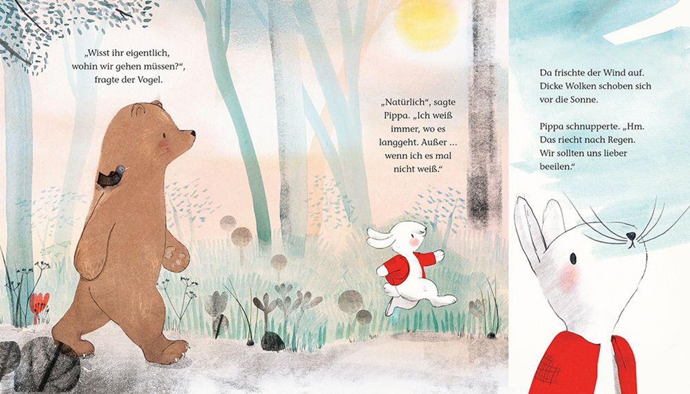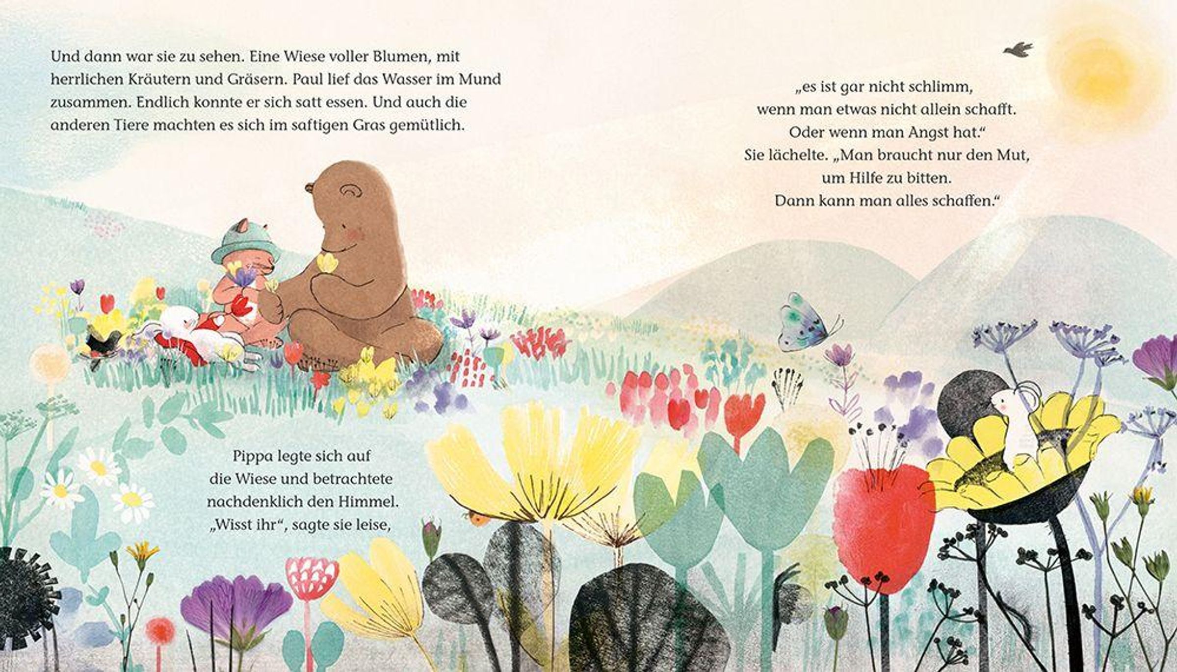 Der stille, freundliche Paul hat Hunger - und so macht sich Pippa mit ihm auf den Weg. Unterwegs schließen sich ihnen ein verletzter Vogel und ein ängstlicher Fuchs an. Gemeinsam trotzen sie Regen und Dunkelheit und wachsen als Freunde zusammen. Dabei entdecken sie, dass sie aufeinander angewiesen sind und es gar nicht schlimm ist, wenn man etwas nicht allein schafft.