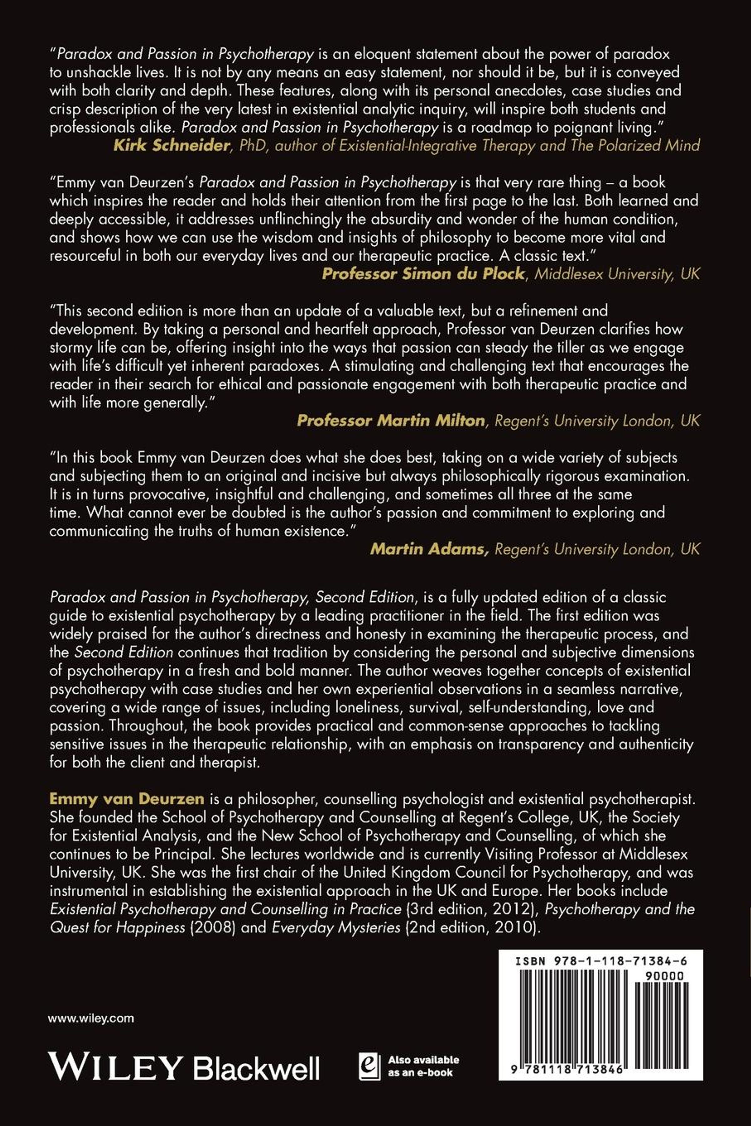 Paradox and Passion in Psychotherapy, second edition, is a fully updated edition of a classic guide to existential psychotherapy by a leading practitioner in the field. The first edition was widely praised for the author's directness and honesty in examining the therapeutic process, and the Second Edition continues that tradition by considering the personal and subjective dimensions of psychotherapy in a fresh and bold manner. The author weaves together concepts of existential psychotherapy with case studies and her own experiential observations in a seamless narrative, covering a wide range of issues including loneliness, survival, self-understanding, love, and passion. Throughout, the book provides practical and commonsense approaches to tackling sensitive issues in the therapeutic relationship with an emphasis on transparency and authenticity for both the client and therapist.