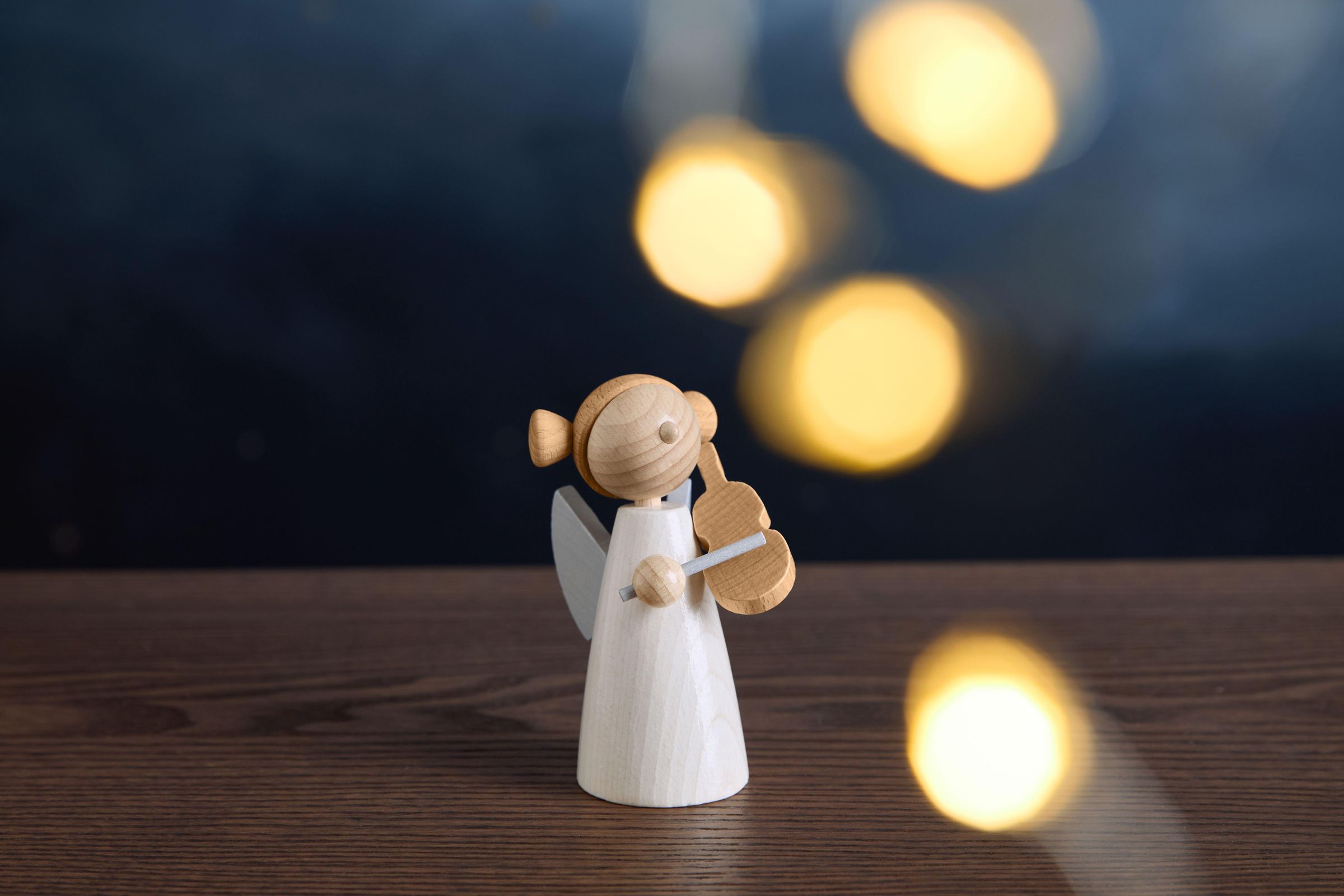 Ein Engel für alle Fälle: Dieses putzige Engelchen eignet sich nicht nur als wunderschöne Deko, es verzaubert seine Besitzer als Schutzengel auch das ganze Jahr über. Das stilvoll farbreduzierte, naturbelassene Buchenholz zeigt seine schöne Kontur und Maserung und verleiht dem Engel inklusive Geige so einen ganz individuellen Charakter.