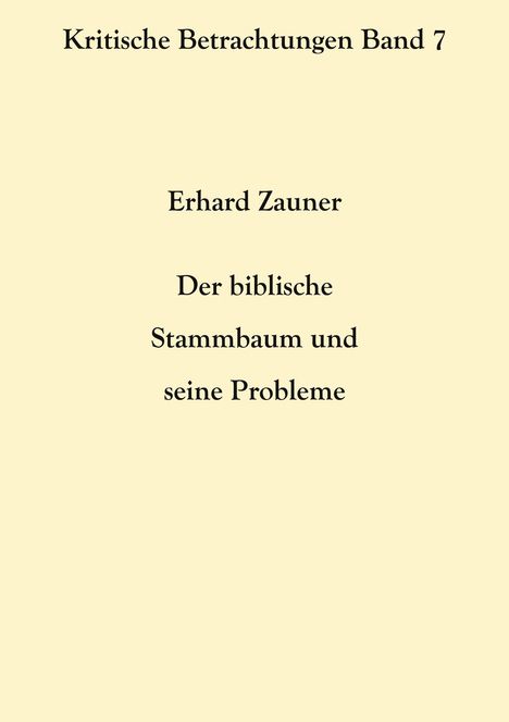 Erhard Zauner: Der biblische Stammbaum und seine Probleme, Kartoniert / Broschiert
