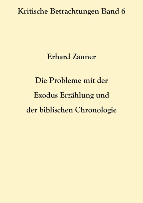 Erhard Zauner: Die Probleme mit der Exodus Erzählung und der biblischen Chronologie, Kartoniert / Broschiert