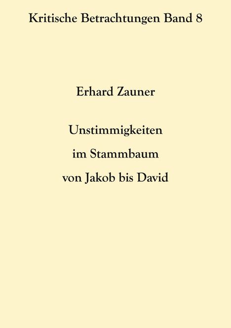 Erhard Zauner: Unstimmigkeiten im Stammbaum von Jakob bis David, Kartoniert / Broschiert