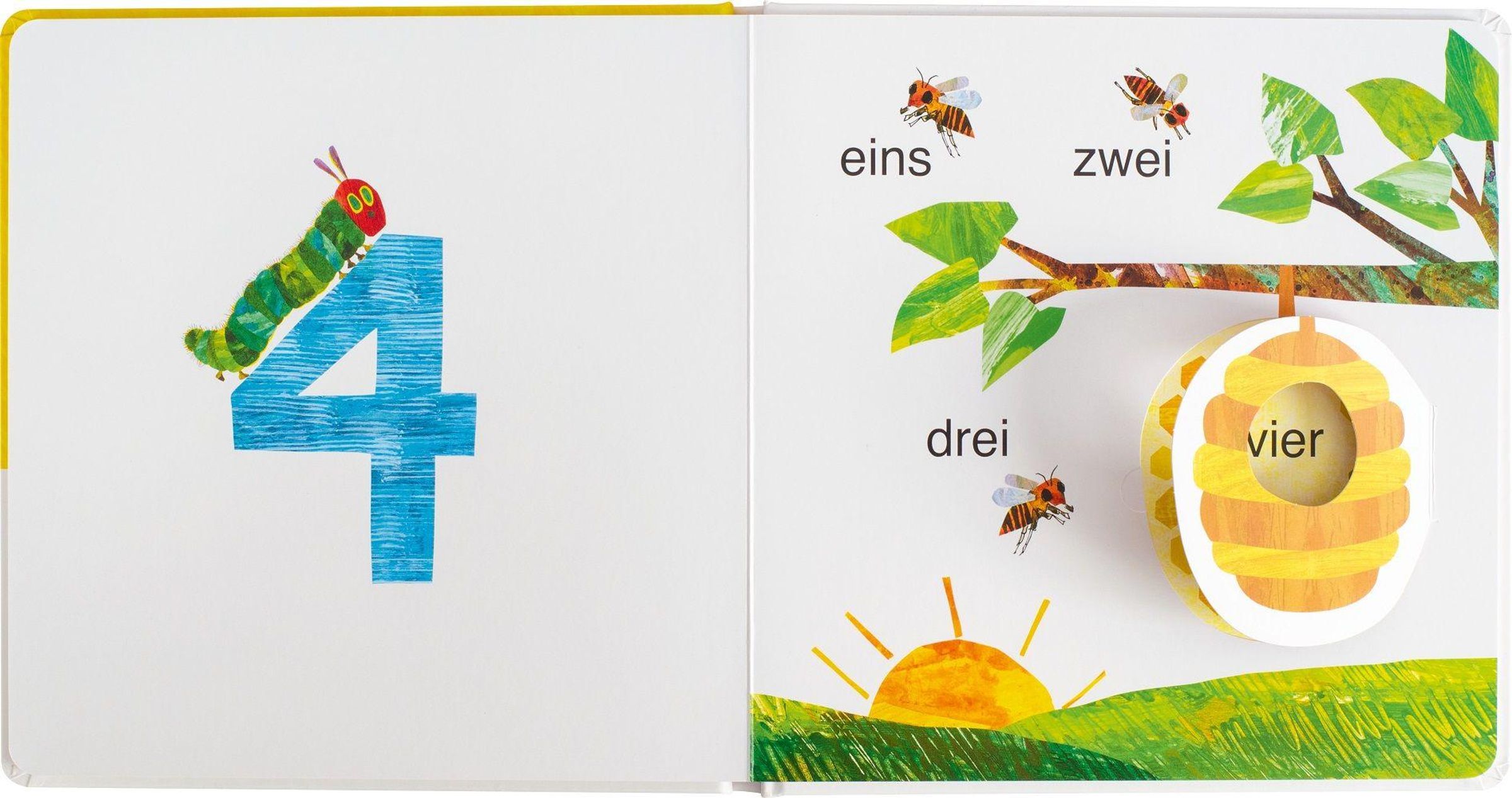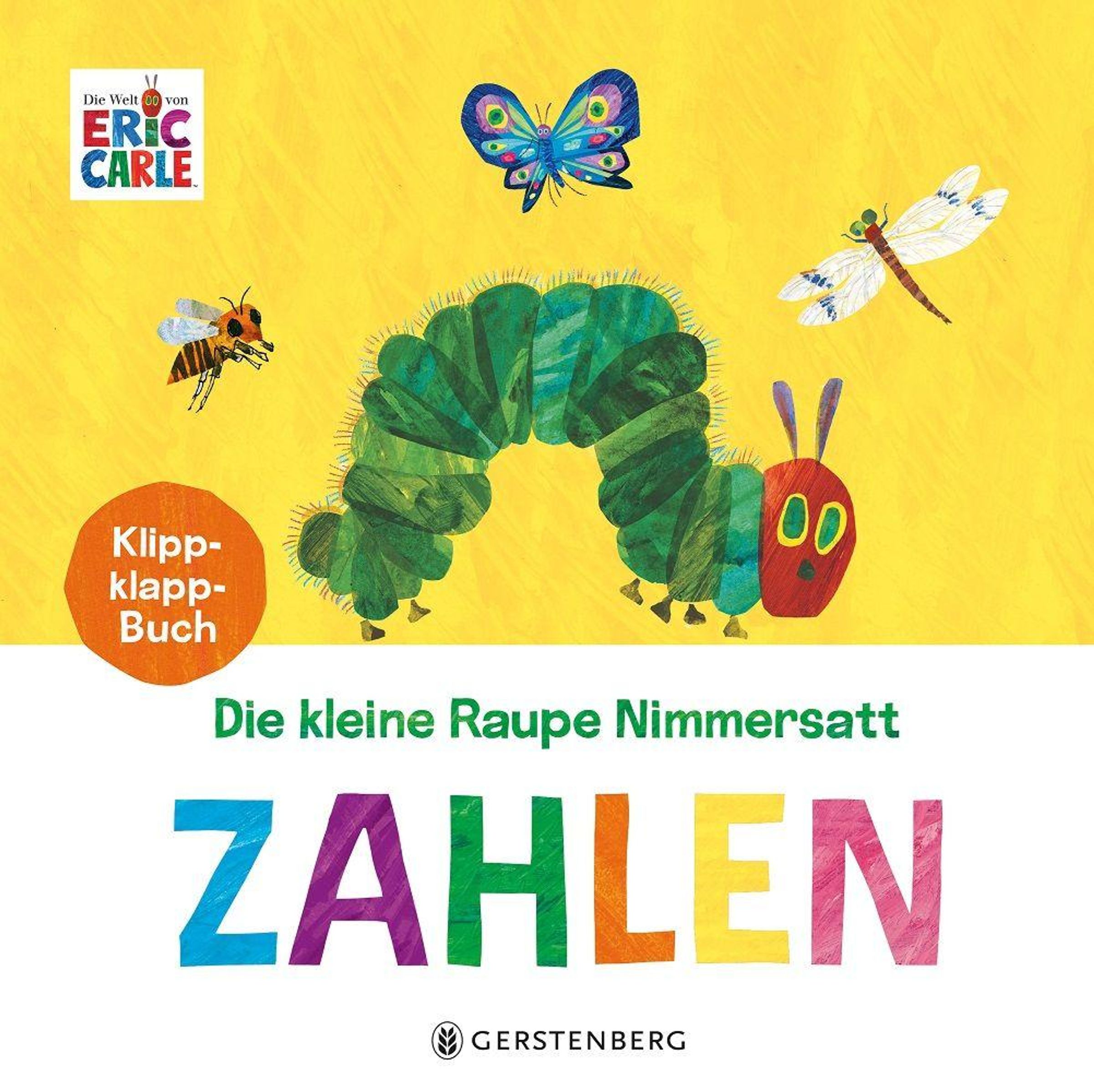 Die kleine Raupe Nimmersatt hat Gucklöcher in die Klappen gefressen. Was wird da wohl gezählt? Die kleine Raupe Nimmersatt ist auf jeden Fall dabei, wenn die Zahlen von eins bis fünf als Ziffer und Wort erforscht werden.