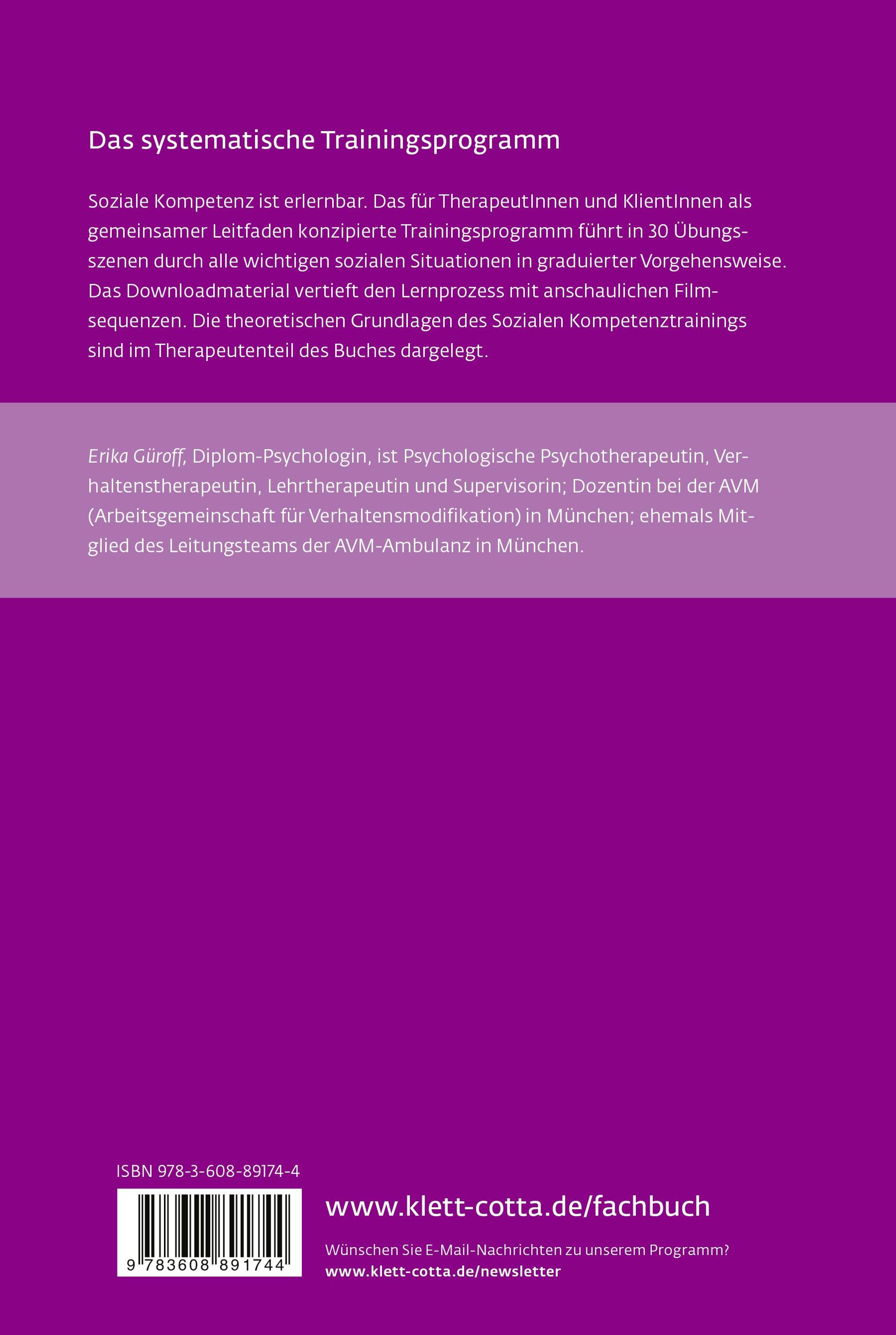 Soziale Kompetenz ist erlernbar. Das für TherapeutInnen und KlientInnen als gemeinsamer Leitfaden konzipierte Trainingsprogramm führt in 30 Übungsszenen durch alle wichtigen sozialen Situationen in graduierter Vorgehensweise. Das Downloadmaterial vertieft den Lernprozess mit anschaulichen Filmsequenzen. Die theoretischen Grundlagen des Sozialen Kompetenztrainings sind im Therapeutenteil des Buches dargelegt.