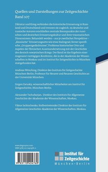 Diktatur und Krieg verbinden die historische Erinnerung in Russland und Deutschland und trennen sie zugleich. 29 deutsche und russische Autoren erschließen zentrale Brennpunkte der russischen und deutschen Erinnerungskultur und ihrer traumatischen Dimensionen. Behandelt werden - aus je zweifacher Perspektive - "klassische" Erinnerungsorte wie etwa Stalingrad, ferner spezifische "Gruppengedächtnisse", Probleme historischer Orte und Aspekte der filmischen Auseinandersetzung mit der Geschichte des deutsch-sowjetischen Kriegs. Der Band ist das Ergebnis einer insgesamt viertägigen Konferenz, die in der Akademie der Wissenschaften in Moskau und im Institut für Zeitgeschichte in München stattgefunden hat.