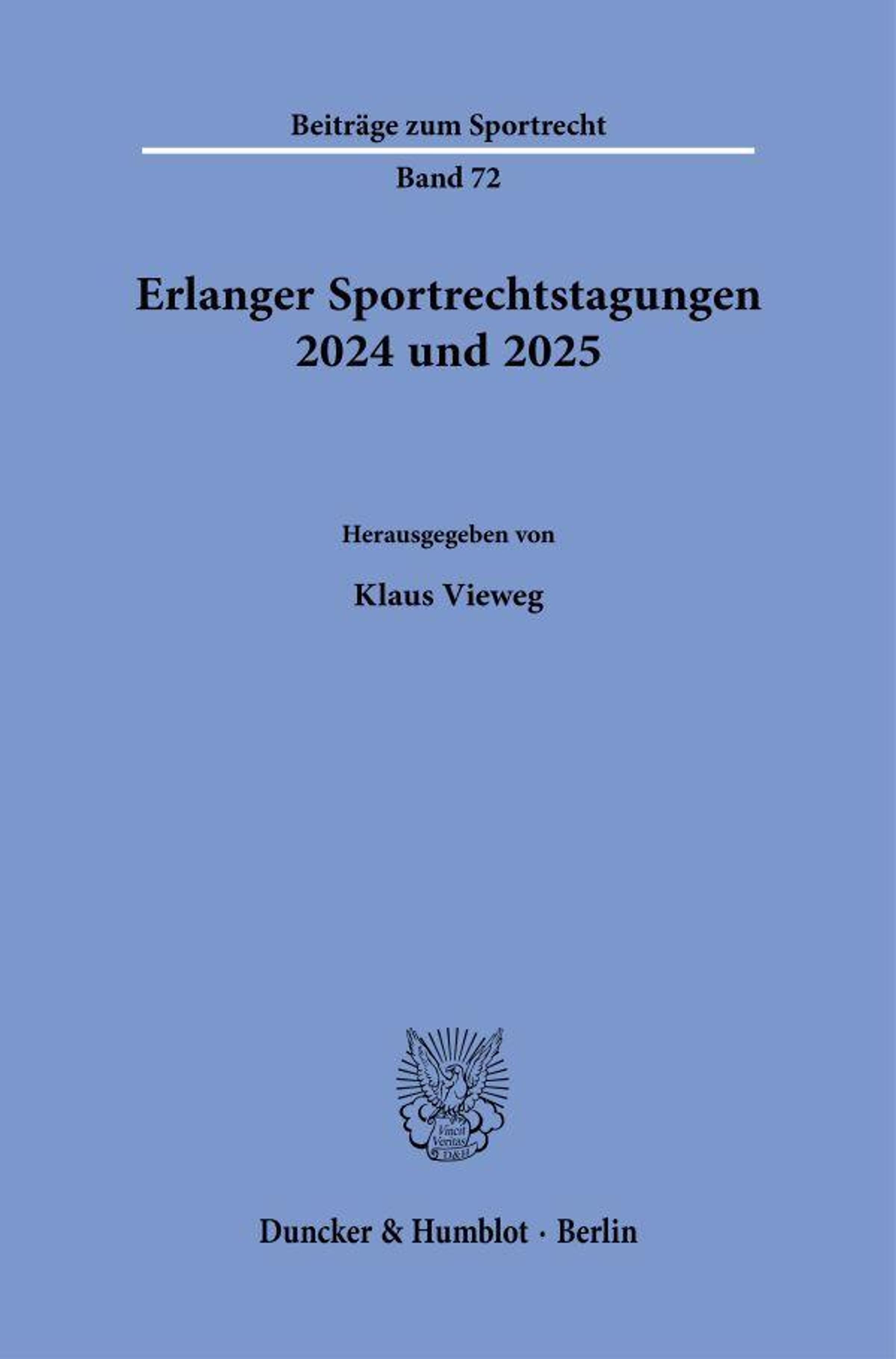 Die von der Erlanger Forschungsstelle für Deutsches und Internationales Sportrecht veranstalteten 'Erlanger Sportrechtstagungen' setzen seit 2018 die Tradition der 15 Interuniversitären Sportrechtstagungen fort, deren über 100 Vorträge jeweils in den 'Beiträgen zum Sportrecht' erschienen sind. Mit der Auswahl der Referenten aus Doktoranden, die über ihre aktuellen Forschungsergebnisse berichten, und etablierten Sportrechtlern, die die Entwicklung des überaus dynamischen Sportrechts über die Jahre verfolgt haben, sind immer spannende Diskussionen gewährleistet, die dann in die Veröffentlichung der Referate einfließen. Die Erlanger Sportrechtstagungen 2024 und 2025 spiegeln erneut die Vielfalt des Sportrechts wider. Besondere Erwähnung finden die aktuellen Beiträge zum Safe Sport Code, zur Verantwortung der Vereine und Verbände für die körperliche Integrität der Athleten, zur Nachhaltigkeit von Sportgroßevents sowie zur EuGH-Rechtsprechung.