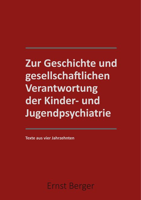 Das Buch umfasst eine Sammlung von kinder- und jugendpsychiatrischen Fachbeiträgen des Autors aus den jahren 1988 - 2018. Die thematische Klammer der Beiträge ist die gesellschaftliche Verantwortung und die Geschichte des Faches Kinder- und Jugendpsychiatrie mit dem Schwerpunkt Österreich.