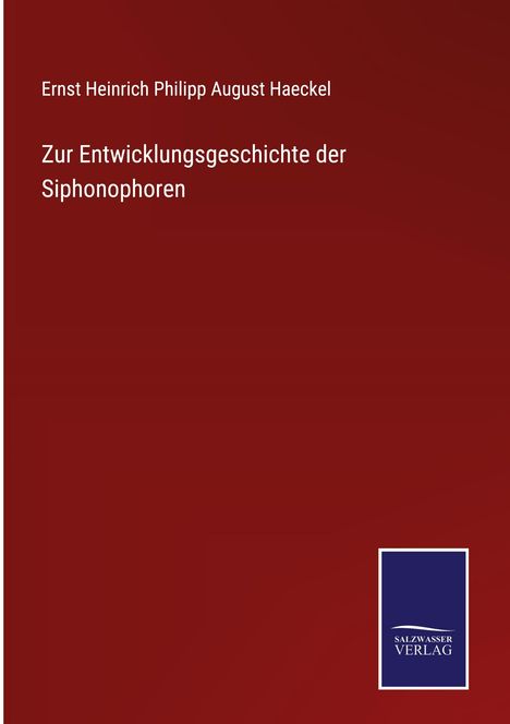 Ernst Heinrich Philipp August Haeckel: Zur Entwicklungsgeschichte der Siphonophoren, Gebunden