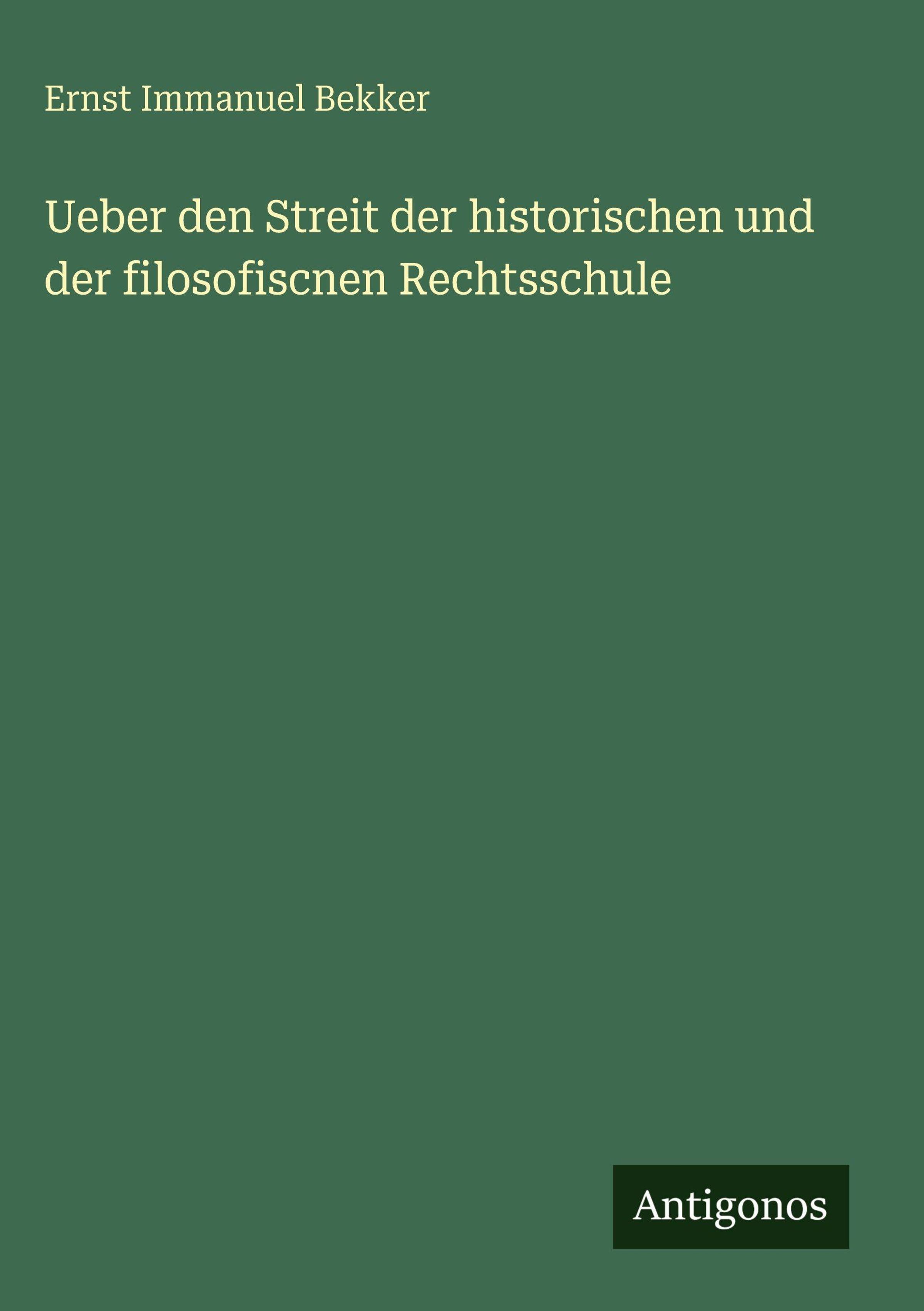 Ernst Immanuel Bekker: Ueber den Streit der historischen und der filosofiscnen Rechtsschule, Gebunden