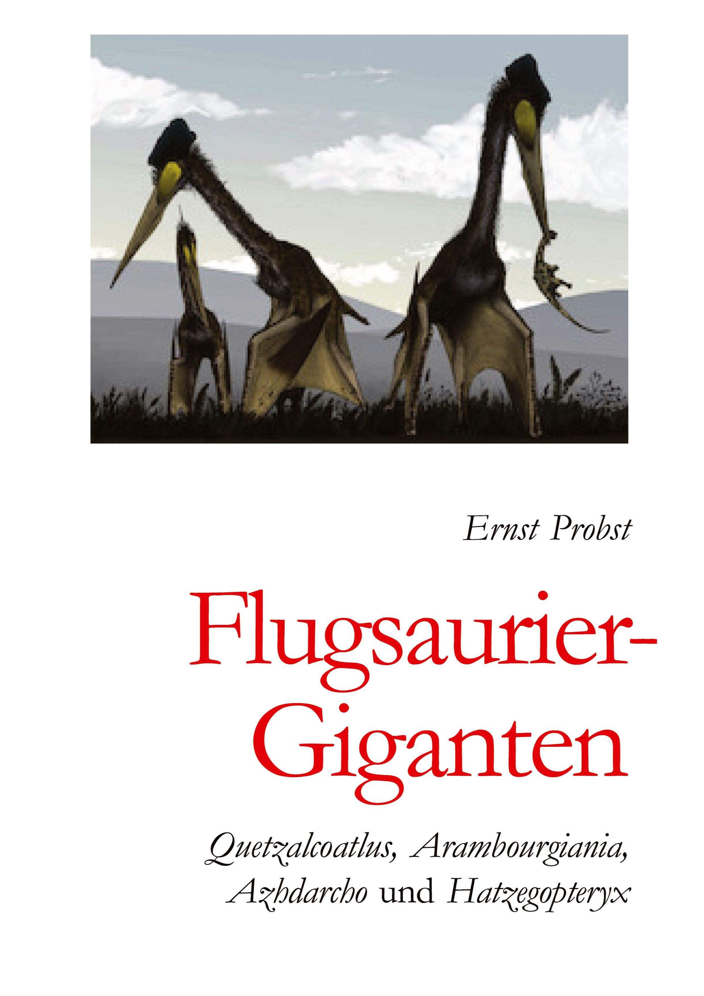 Wahre Riesen mit bis zu sechs Metern Höhe, mit bis zu drei Meter langem Kopf und mit einer Flügelspannweite bis zu zwölf Metern gab es in der Kreidezeit bei den Flugsauriern. Am imposantesten waren Quetzalcoatlus in Nordamerika, Mittel- und Südamerika, Arambourgiania in Jordanien, Azhdarcho in Usbekistan, Kasachstan und vielleicht in Tadschikistan sowie Hatzegopteryx in Rumänien. Im Vergleich zur enormen Flügelspannweite war der Rumpf klein. Wegen ihrer hohlen Knochen hatten diese Tiere ein für ihre Größe sehr geringes Gewicht von nur etwa 100 oder allenfalls 250 Kilogramm. Vermutlich konnten die monströsen Flugsaurier aus eigener Kraft vom Boden starten. Dafür mussten sie zuerst mit den Hinterbeinen einige Meter in die Luft springen. Weite Strecken legten sie wahrscheinlich nicht im Aktiv-, sondern im Segelflug zurück. Ihre Lebensweise ist noch unklar. Weil sie keinen sehr stabilen Schnabel besaßen, dürften sie keine Aasfresser gewesen sein. Die größten Flugsaurier in der Kreidezeit in Deutschland erreichten möglicherweise eine Flügelspannweite von ungefähr vier Metern. Nachzulesen ist dies in dem 194-seitigen Buch "Flugsaurier-Giganten" (2025). Die Texte und Abbildungen stammen teilweise aus dem 568 Seiten umfassenden Werk "Flugsaurier in "Deutschland" (2023) des Wissenschaftsautors Ernst Probst.