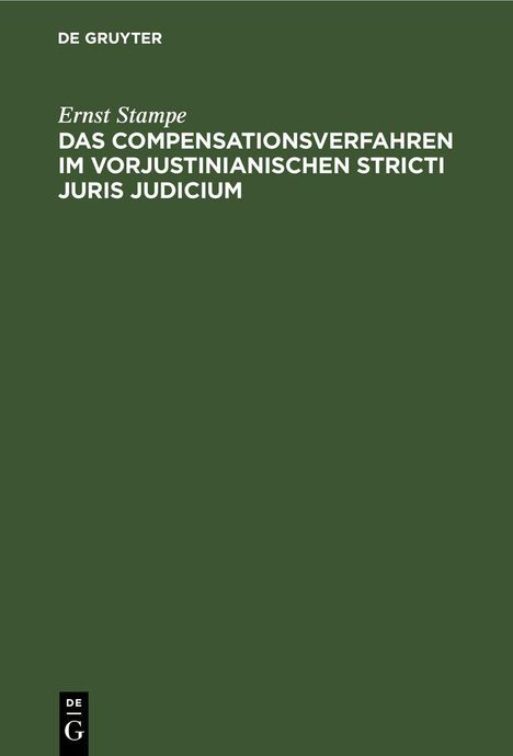 Ernst Stampe: Das Compensationsverfahren im vorjustinianischen Stricti Juris Judicium, Gebunden
