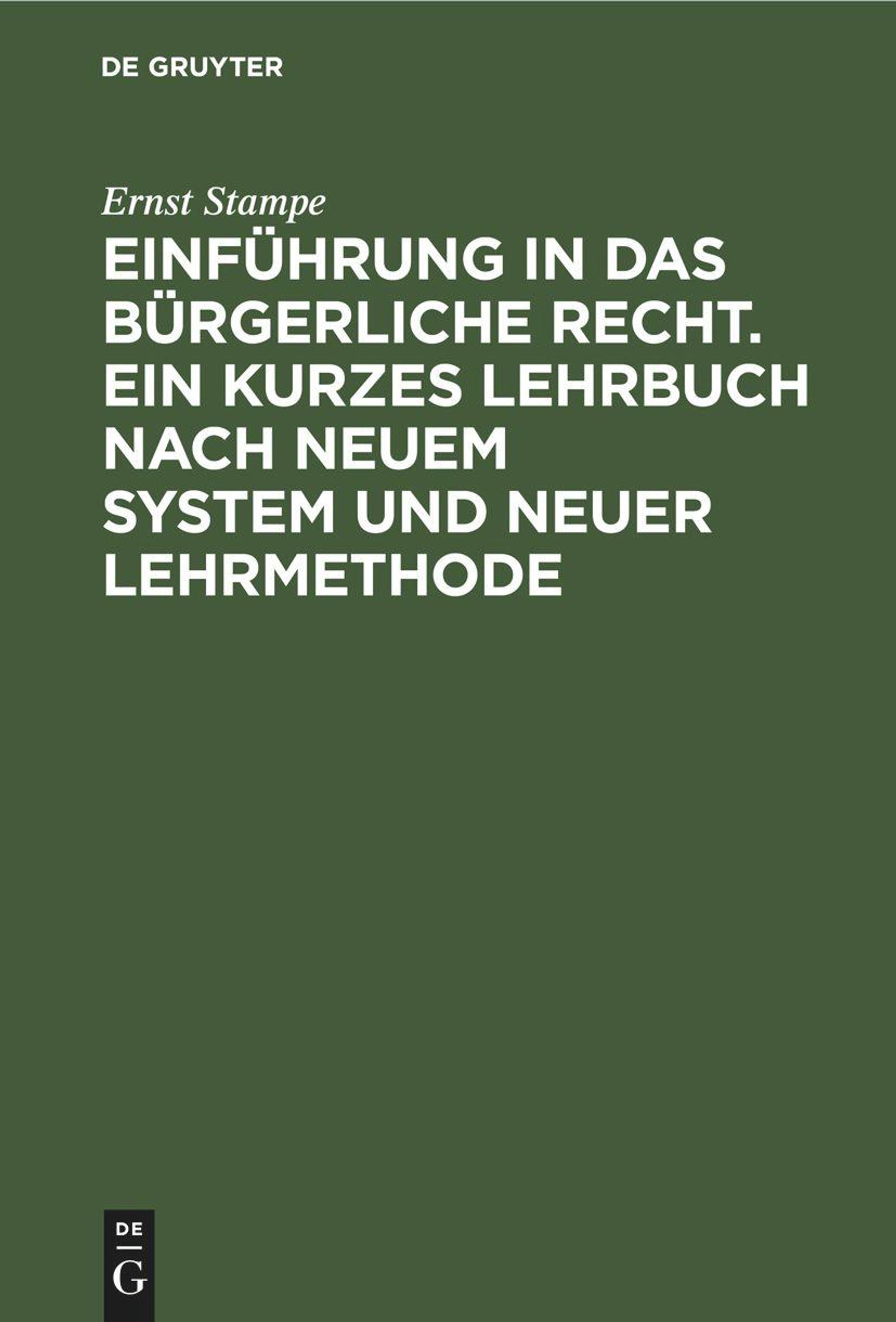 Ernst Stampe: Einführung in das bürgerliche Recht. Ein kurzes Lehrbuch nach neuem System und neuer Lehrmethode, Gebunden