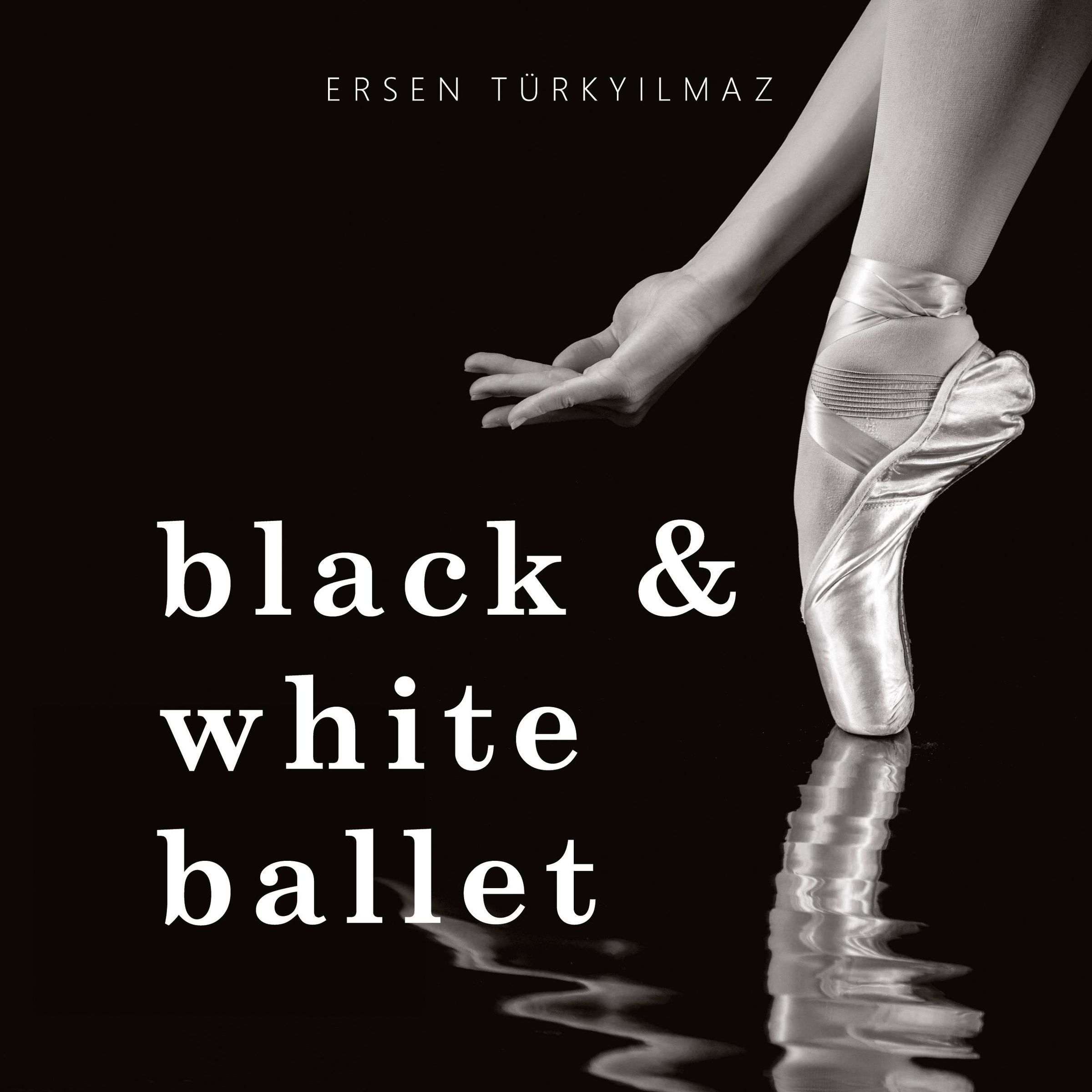 Text: "black & white ballet", "ERSEN TÜRKYILMAZ". Eine Ballerina steht auf dem Spitzenschuh, ihr Arm ist elegant ausgestreckt., Buch