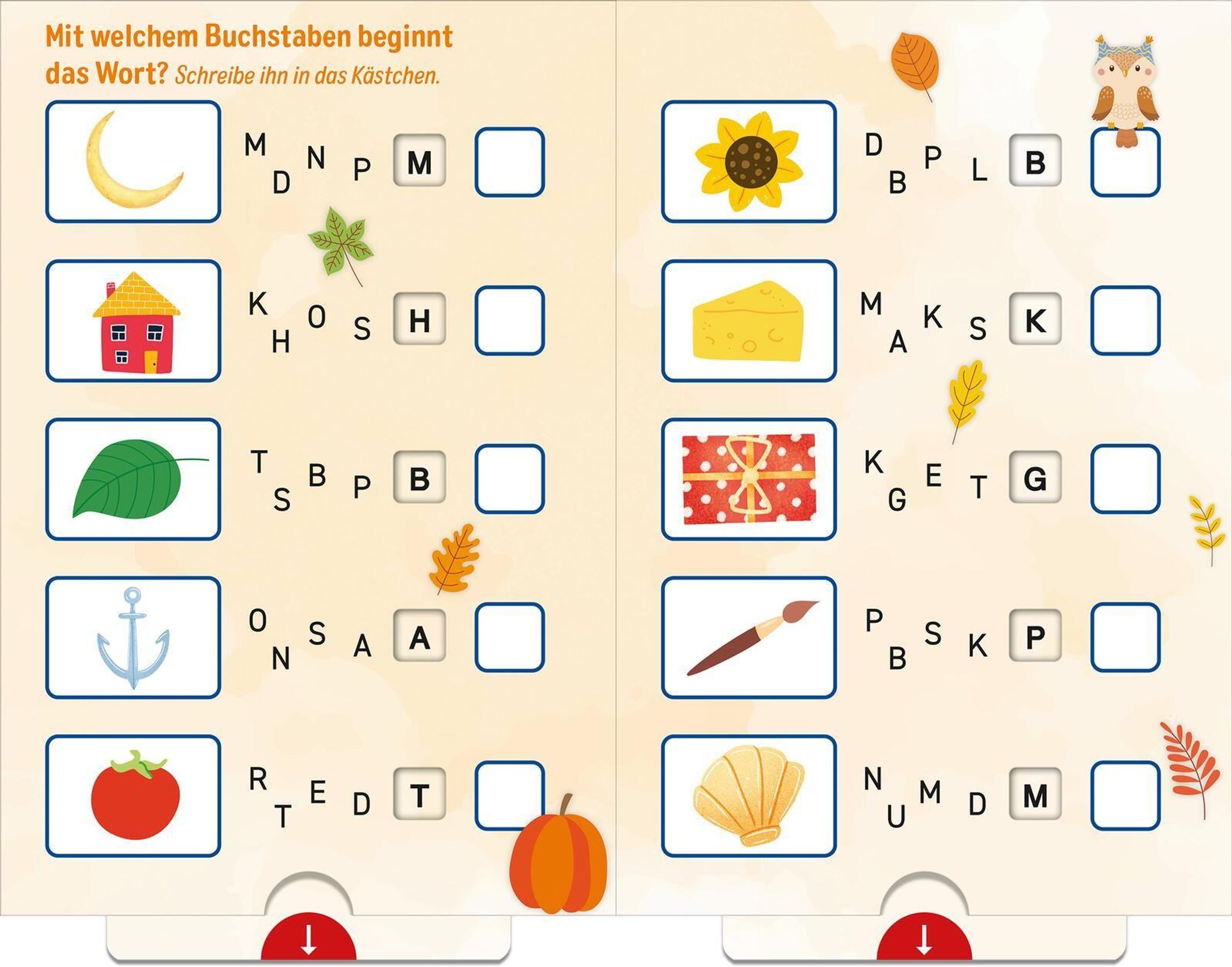 - **Mit abwischbarem Stift:**Dank trocken abwischbarem Stift können die Kinder sofort loslegen, Fehler korrigieren und die Aufgaben beliebig oft üben