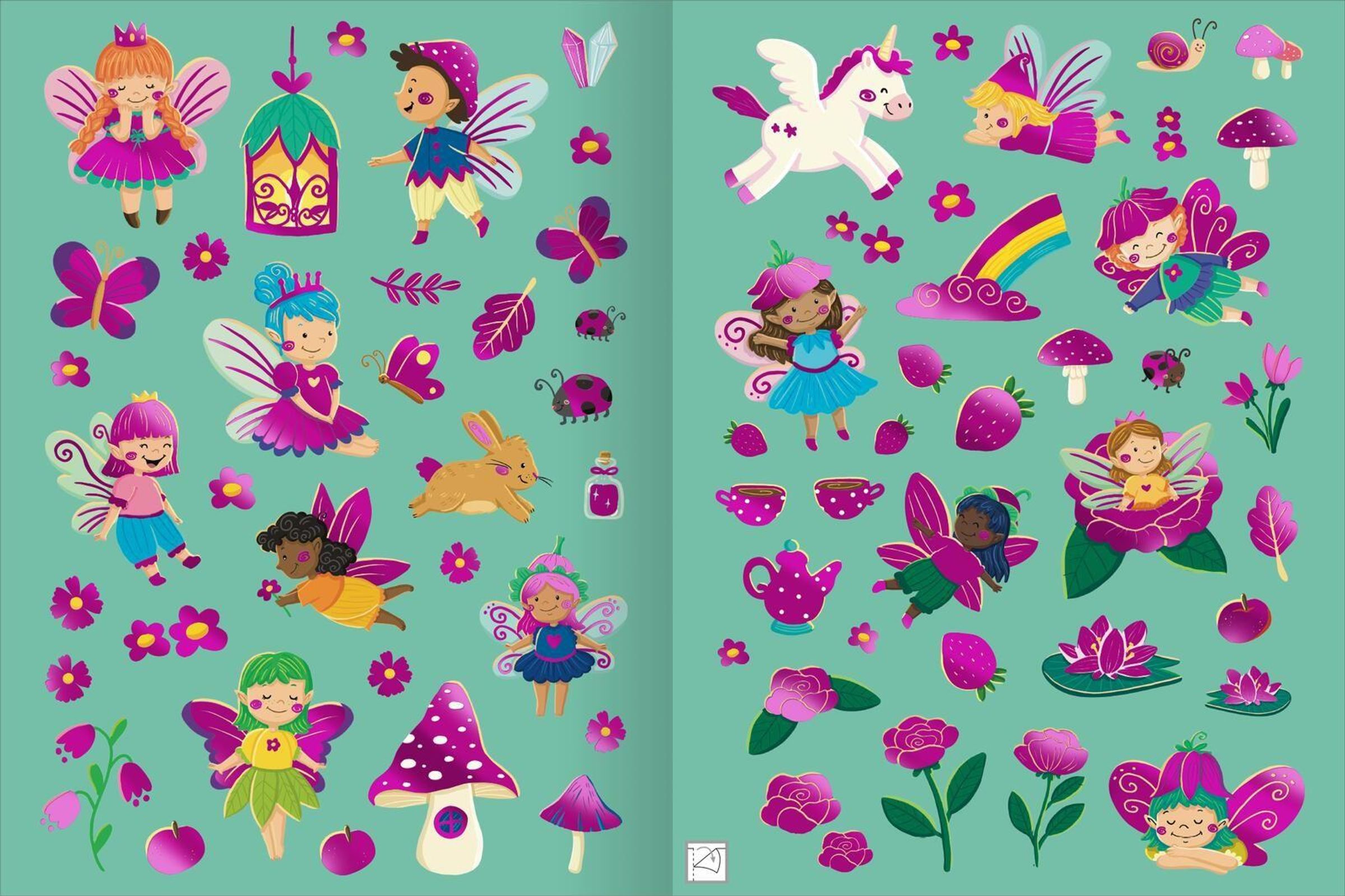 Komm mit in die wunderbar schillernde Welt der Feen! Auf den bunt illustrierten Seiten gibt es jede Menge Szenen zu entdecken: von verzauberten Wäldern über Regenbögen bis hin zu verwunschenen Wasserfällen. Wähle aus über 250 Aufklebern mit coolem Metallic-Effekt und erschaffe einzigartige schillernde Szenen.
