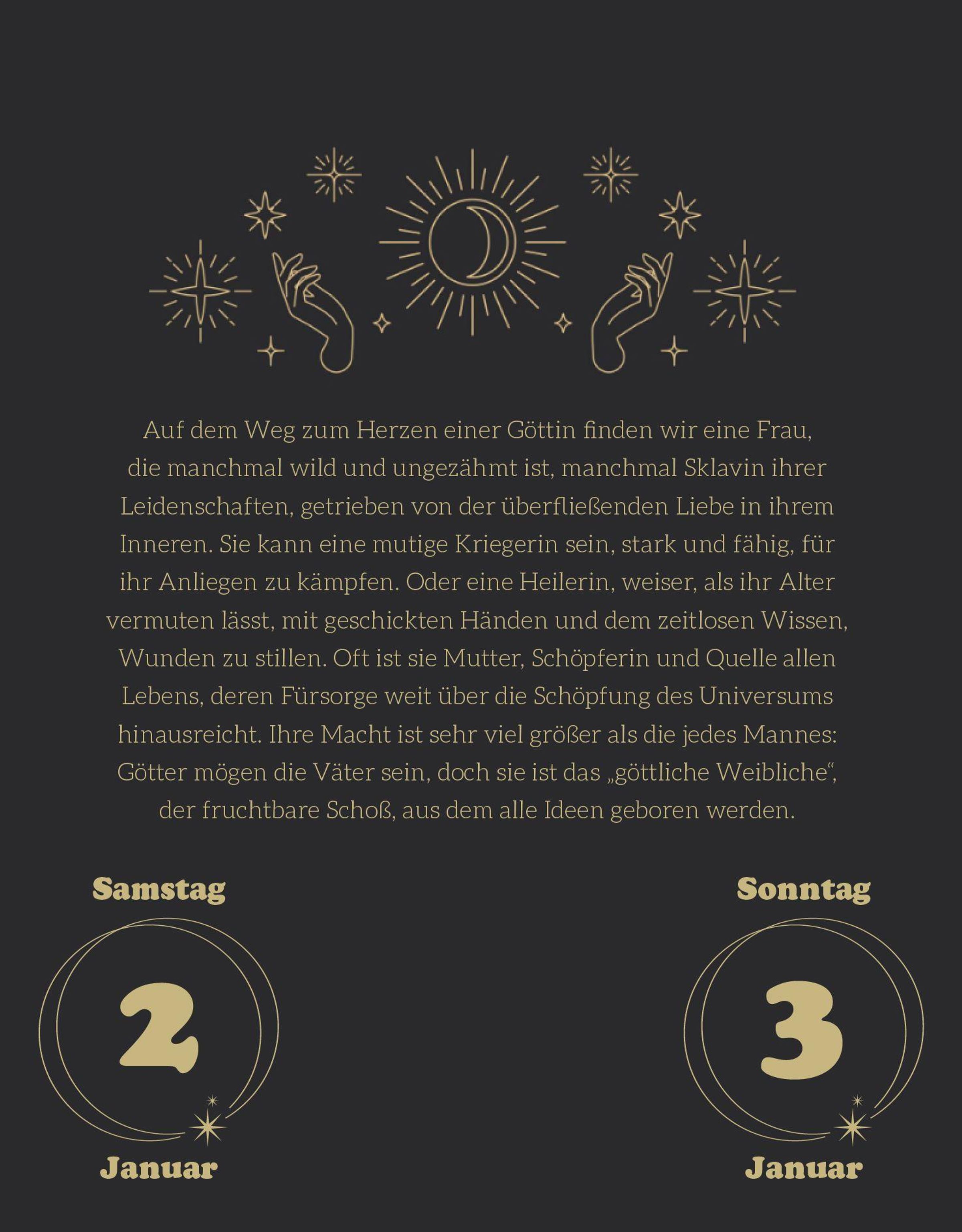 „Erwecke die Göttin in dir 2027" ist mehr als ein Kalender -- es ist ein tägliches Ritual für mehr Bewusstsein, innere Verbindung und liebevolle Selbstbegleitung durchs Jahr.