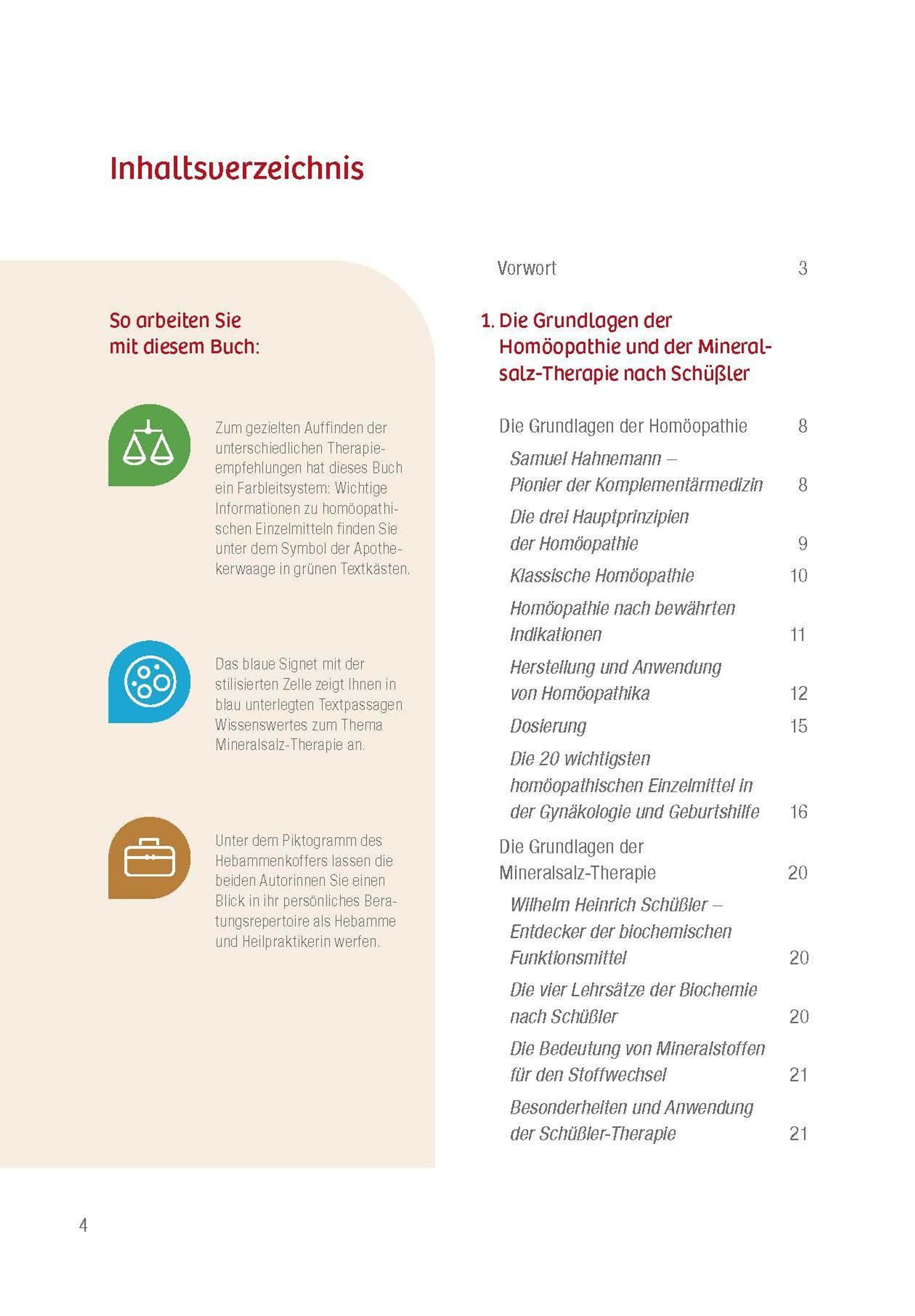 Alle Schwangerschaftsbeschwerden werden eingeleitet von einer Beschreibung sowie der Nennung von Ursachen, Symptomen und Maßnahmen. Darauf folgen bewährte homöopathische Arzneimittel und Schüßler-Salze inklusive Erläuterungen sowie weiterführende Beratungs- und Behandlungstipps. Erfahrungen aus der Hebammenpraxis im Rahmen der Geburtsvorbereitung schließen das Fachbuch ab.